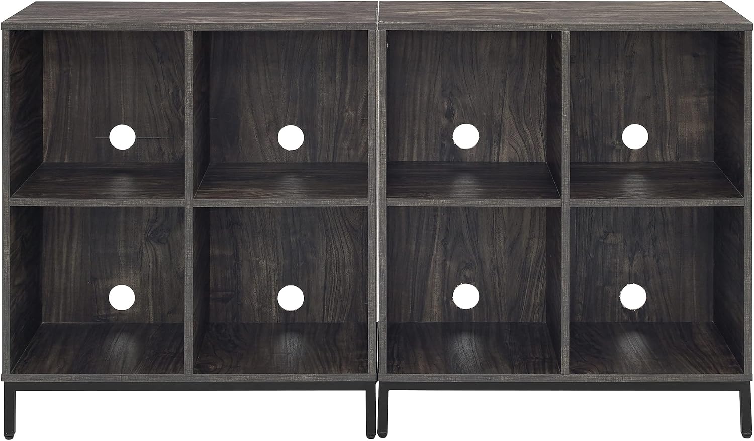 Crosley Furniture Jacobsen 2-Piece Vinyl Record Storage Cube Bookcase Set and Record Player Stand, Brown Ash
