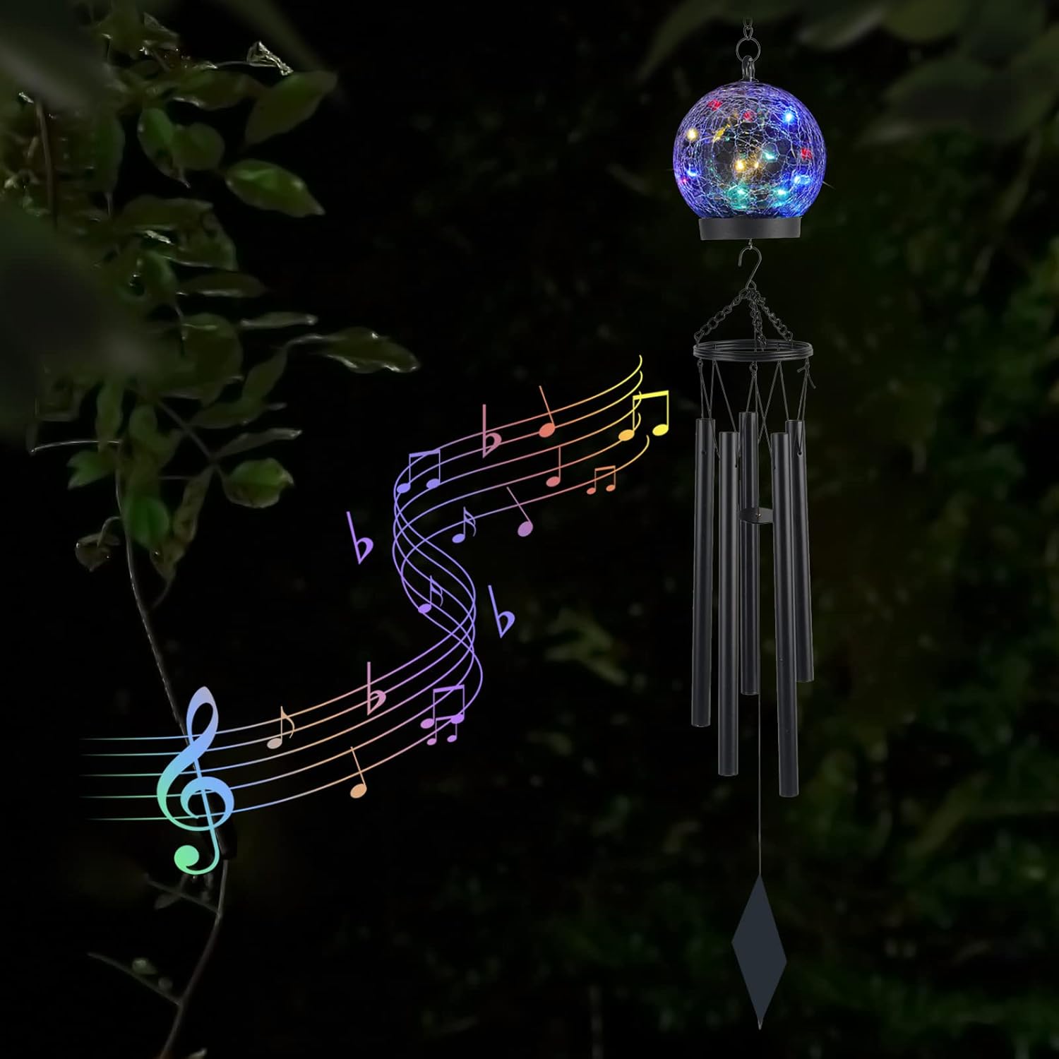 • 【Excellent Design】Elegant wind chimes with crackle glass globes, Each metal tube has sleek clean line. Solar wind chimes will shine in sunlight and twinkle like multi color fairy in night. Creating a happy atmosphere and enjoying the beautiful windchimes in Garden.