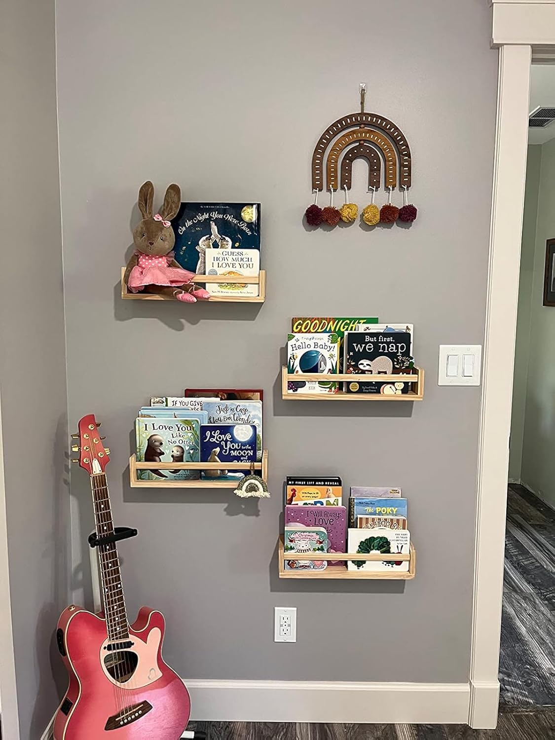 • ✅COMES IN SET OF 4 – We’re offering you a durable, smart, and functional wall shelf set. When you buy this product, you’ll get four well-designed shelves! This nursery room wall shelf comes in a set of four to provide enough space for your books, toys, candles, and other small items at home.