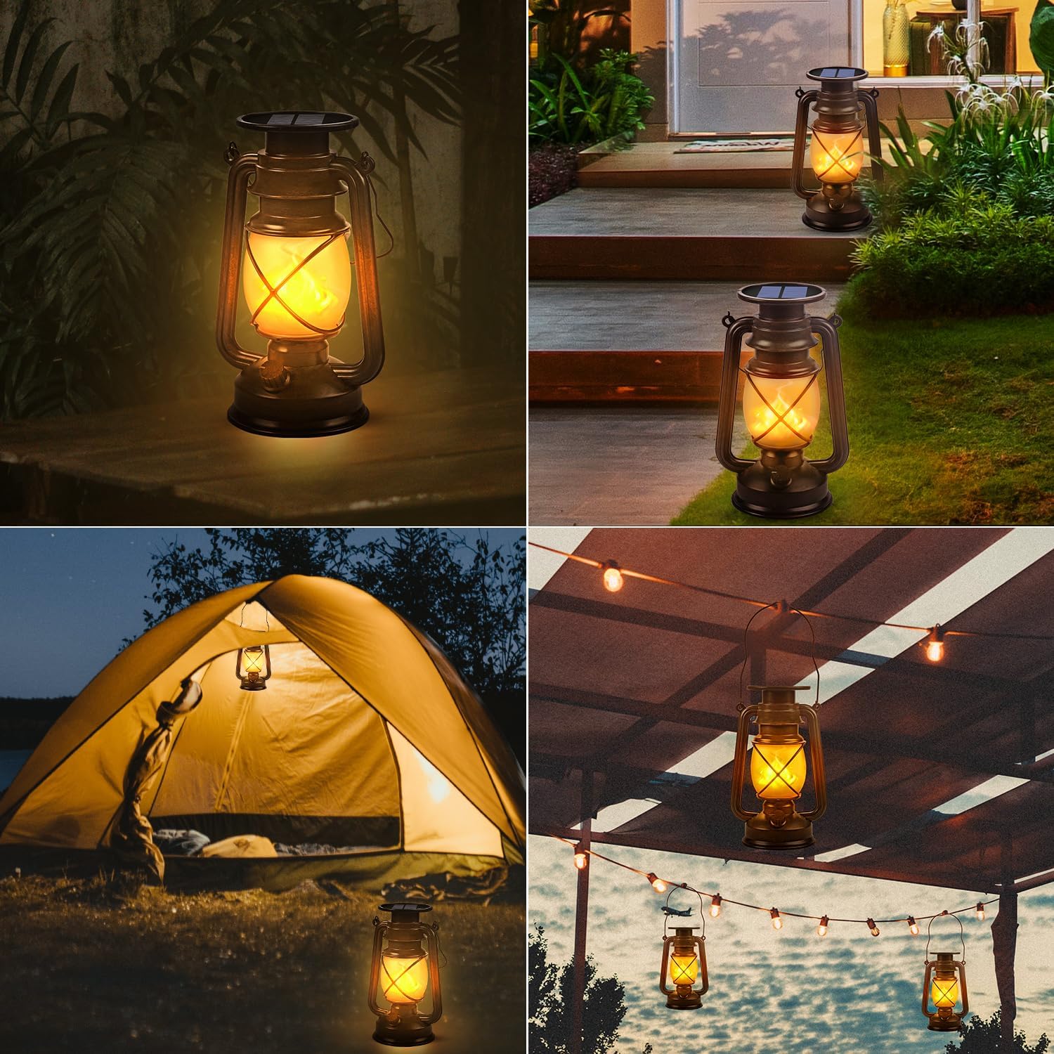 • Weather Resistance and Widely Used : Led solar lantern are waterproof IP44 and extremely durable, which can withstand all kinds of weather all round the year. Equipped with a durable handle, the hanging solar lantern can be easily hung on walls or in the trees and also can be placed on the flat surfaces, such as shelves, table, porch, patio, garden and so on