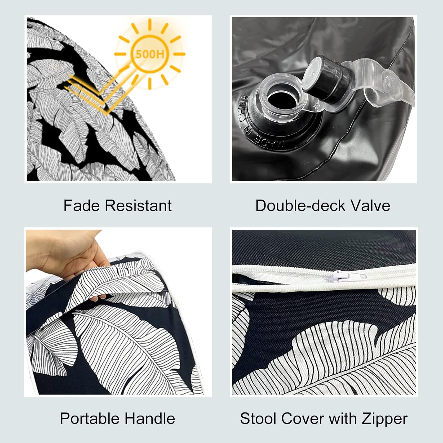 • SAFETY COMES FIRST: 250 micrometer PVC liner ensures lasting durability against tears and punctures; outdoor ottoman is light weighted enough to carry, but can also bear up to 220 pounds (100kg). It brings you comfort and sense of safety even if an adult sit on it.