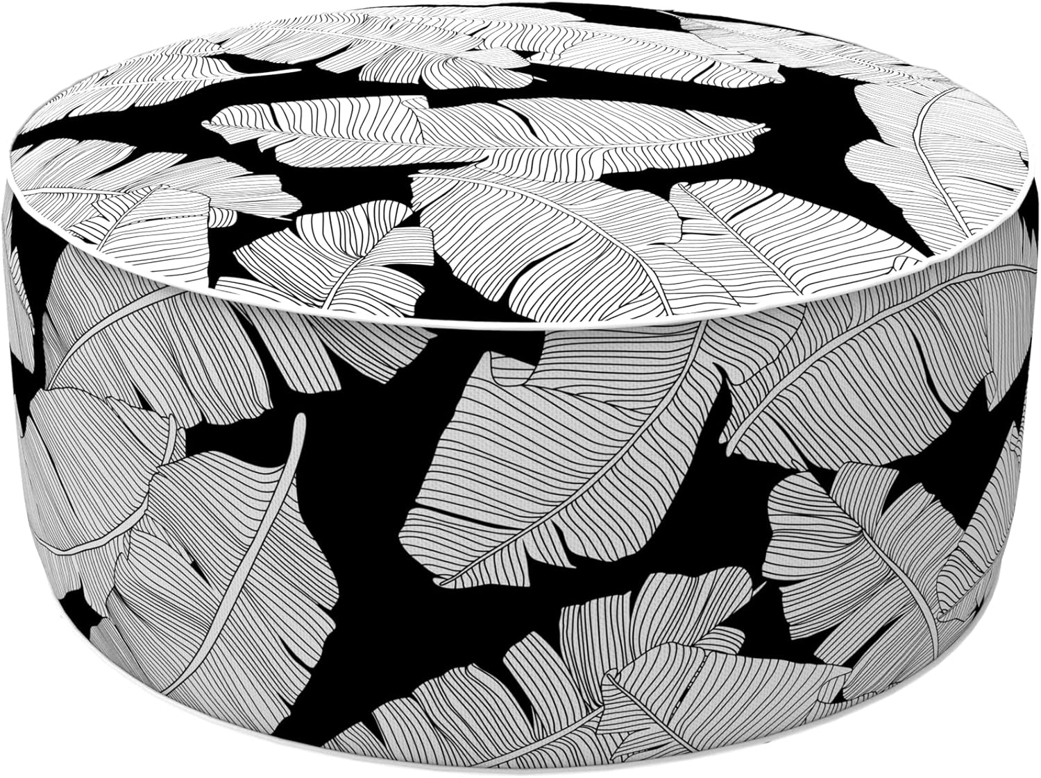 LVTXIII Inflatable Stool Ottoman Footrest with Handle, Indoor or Outdoor Foot Rest for Home Patio Garden and Camping, D21 x H9, Black Lush Leaf Jungle