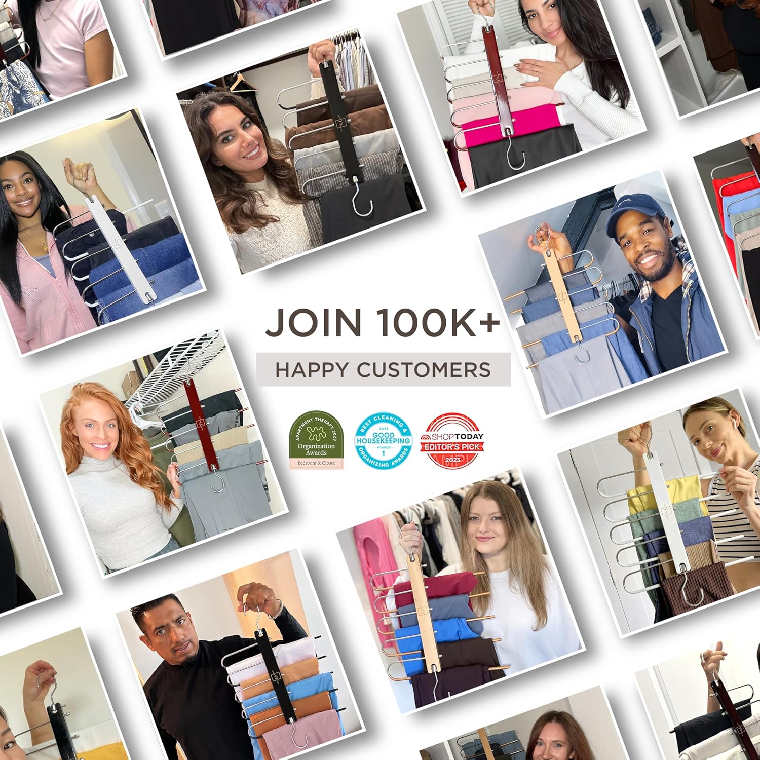 • MULTIUSE SPACE SAVING ORGANIZATION - Our clothes hangers space saving wardrobe organizer goes beyond pants hangers for men and women. Our multi hanger sets are slack hangers, a jeans organizer for closets, skirt organizer hangers, trouser hangers, scarf organizers and more giving a complete multifunctional pants rack.