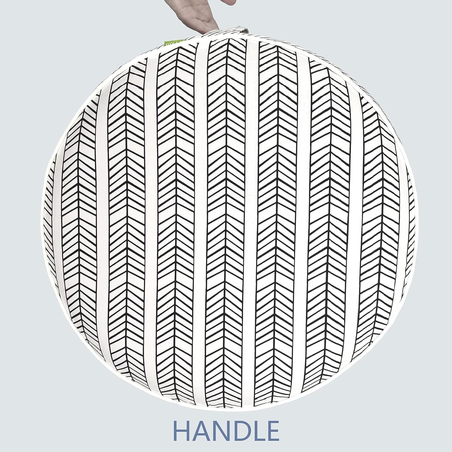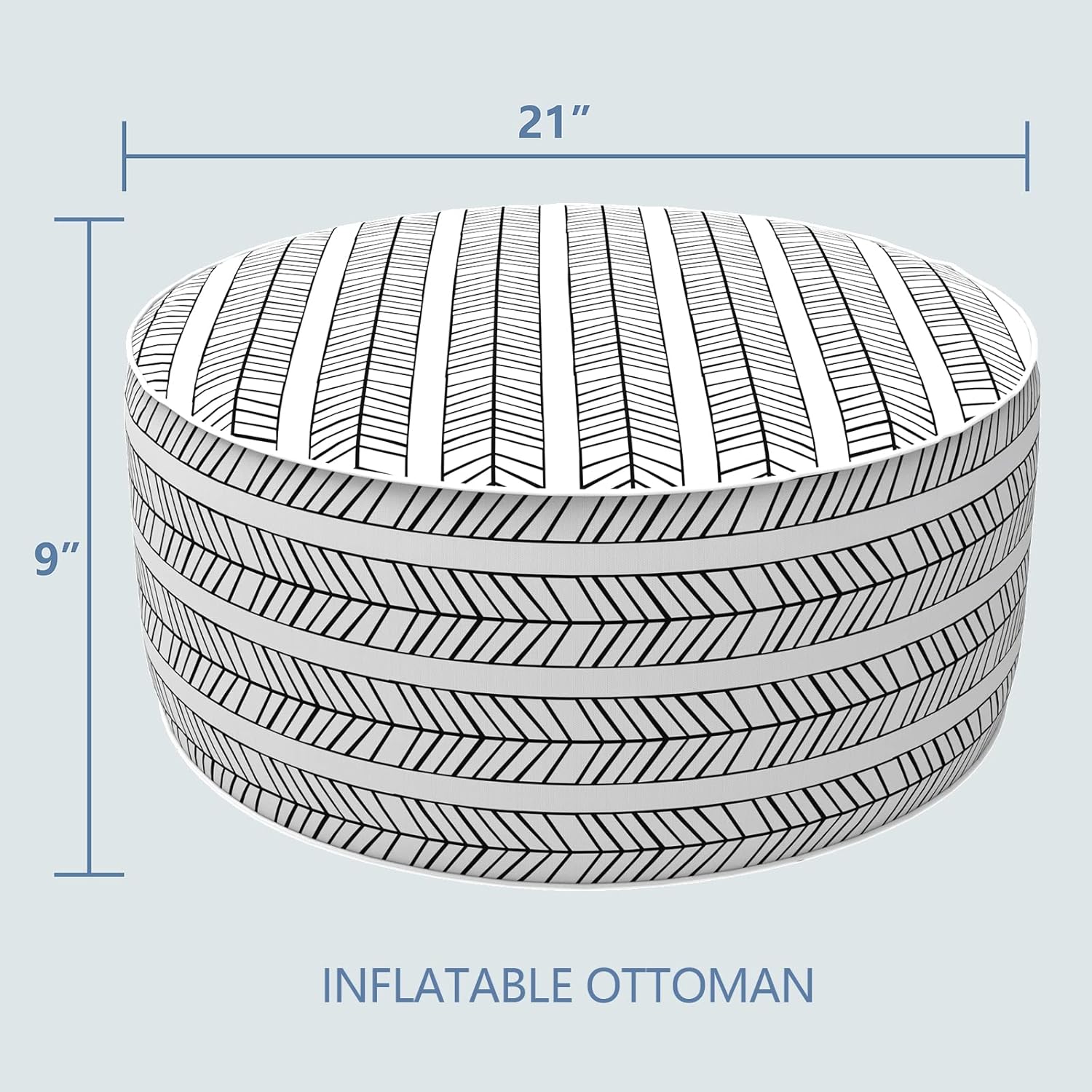 LVTXIII Outdoor/Indoor Inflatable Ottoman, Patio Footrest Stool, Portable Round Ottoman for Patio Garden, Camping or Home, Herringbone Black White