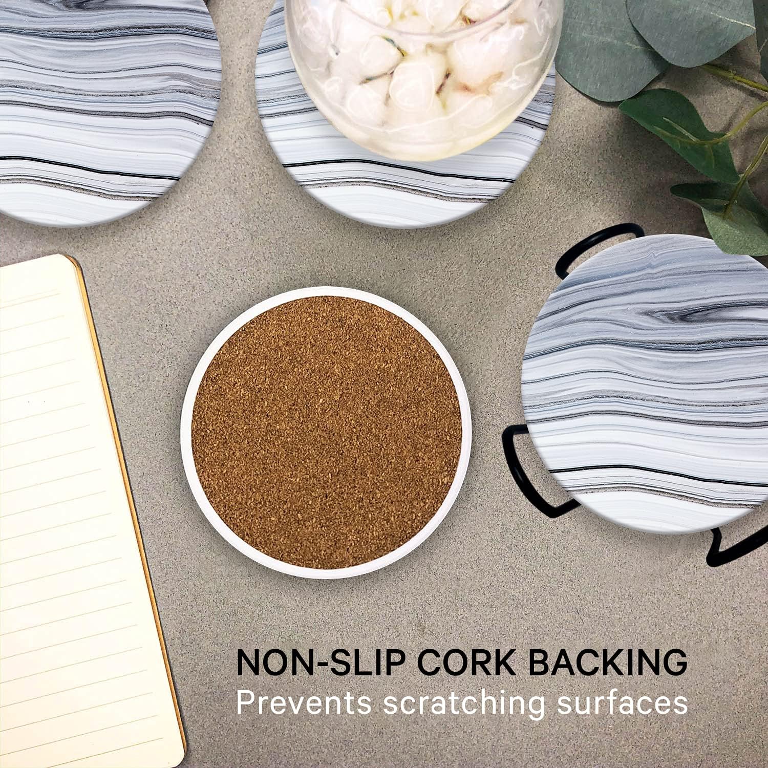 Emerson Coasters for Drinks Absorbent – Natural Stone Drink Coasters Set with Holder, Coasters for Coffee Table, Wooden Tabletop Protection Marble Style – 100% Heavy Duty Set of 6 (Sea)