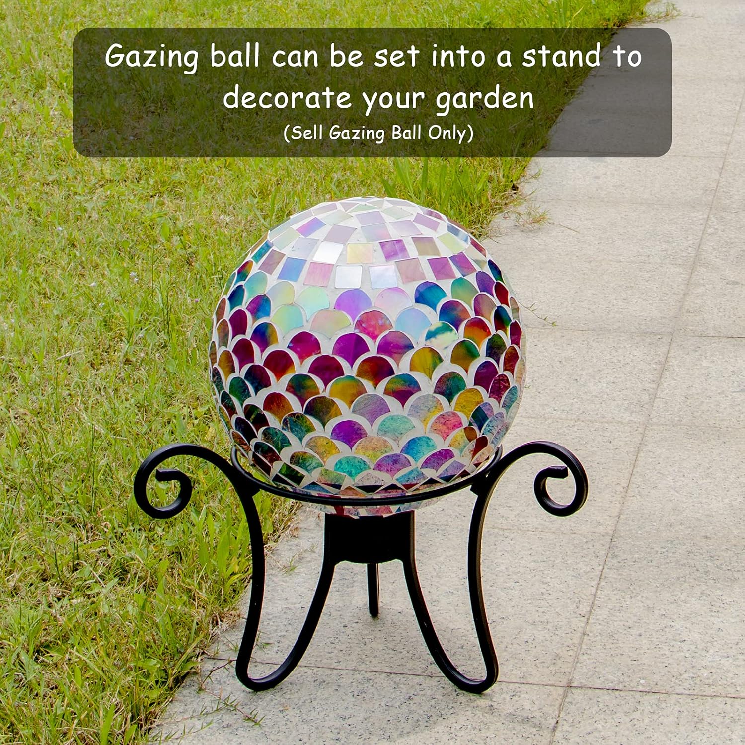 • Sturdy Material: Garden gazing ball is handmade of durable glass and long-lasting cement, glass sphere is in several complementary shades of iridescent to keep its reflective shine and make it be beautiful mosaic gazing ball