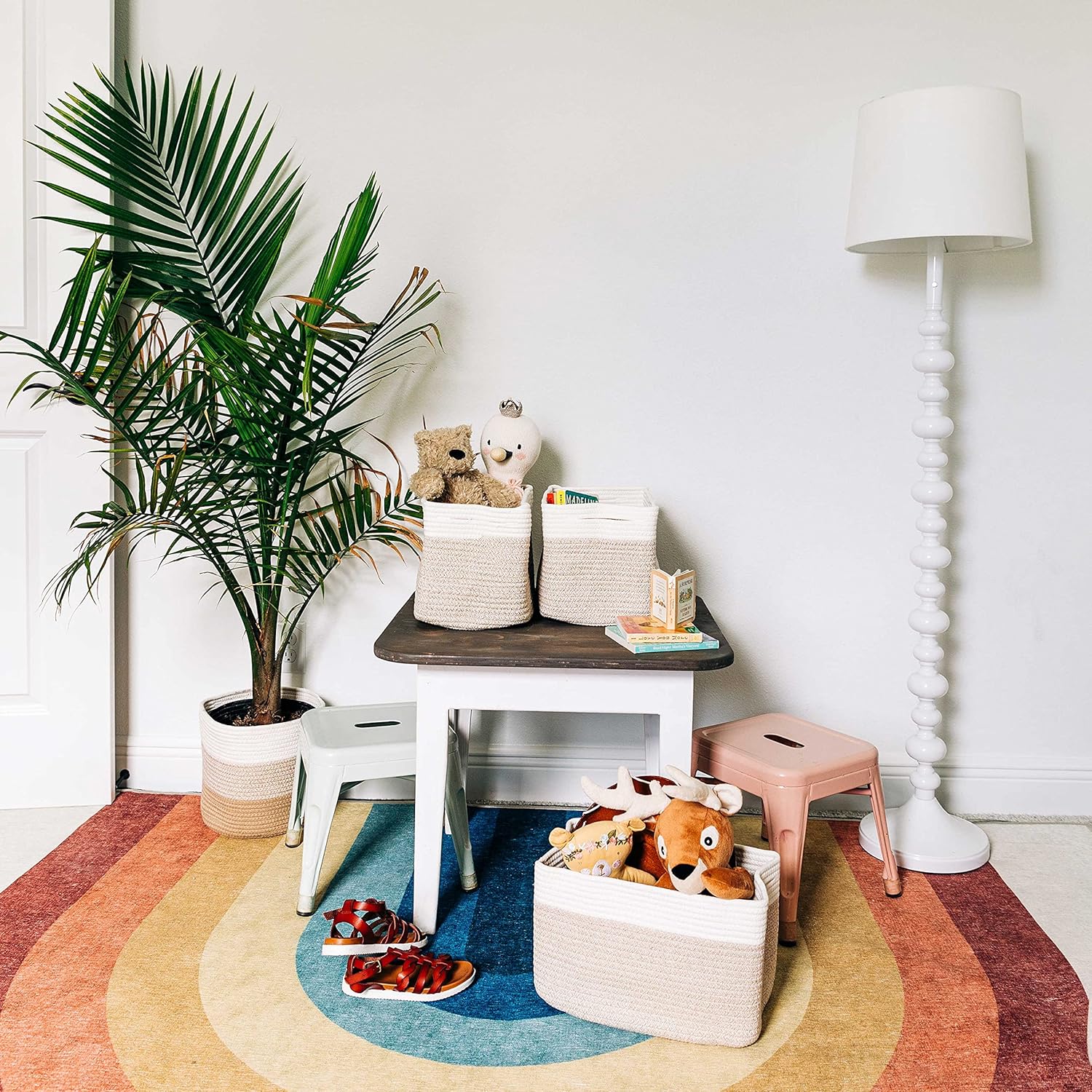 • Vintage Colors to Match Every Style – Charming and stylish these versatile storage organizer bins come in 7 exclusive colors to match your home closet or style including 3-tone gray, blue / off-white, rainbow / off-white, pink / off-white, brown / off-white, gray / black, gray / honey, gray / off-white, honey / off-white, light honey / off-white, black, white and rainbow.