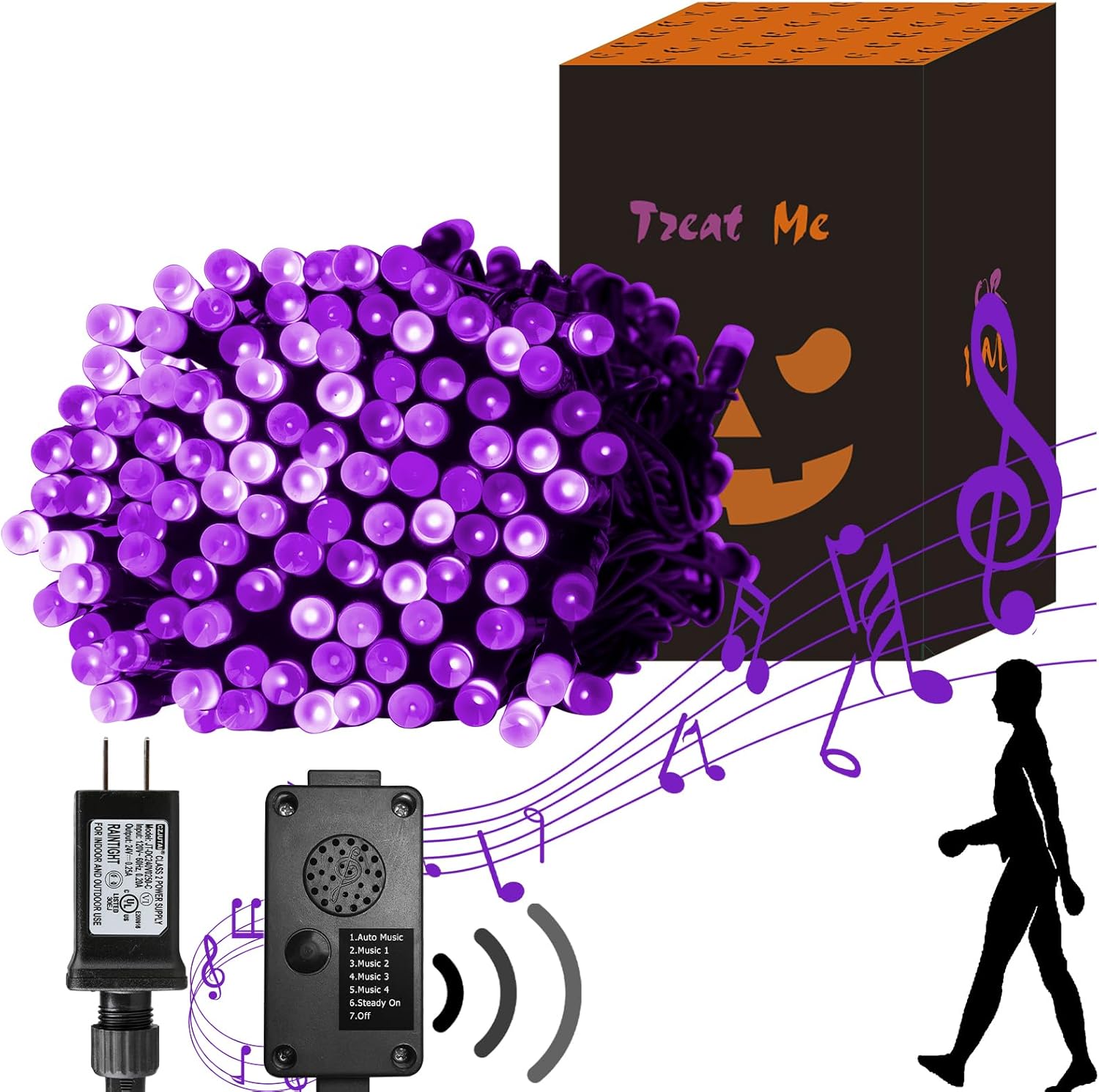 PEIDUO Halloween Decorations Outdoor, 82 FT 200 LED Purple String Lights, Motion Sensor Controller Sync with Spooky Music, Twinkle Fairy Lights for Outside Indoor Party Bedroom Halloween Decor
