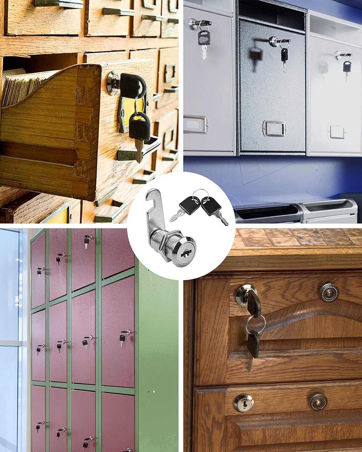 • CONVENIENT AND PRACTICAL: our drawer lock can be easy to install and effectively provide security and privacy protection, which can be widely used in cabinets, drawers, RV, tool box, mailbox, bookcase, wardrobe, cupboards etc.