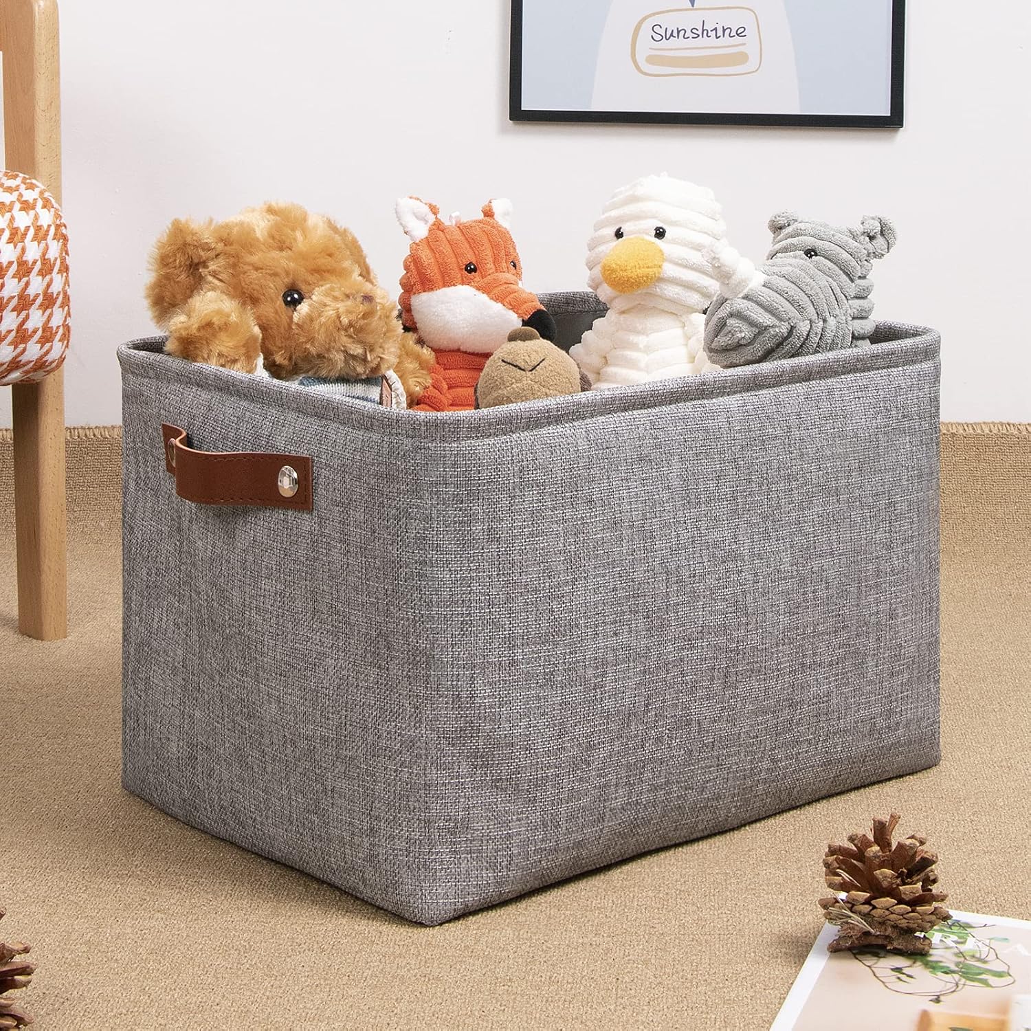 • 【SUITABLE SIZE】 The size of the fabric basket is 15"x11"x9.5", which provides a solution for organizing and storing clothes, toys, laundry, blankets, pillow cases, shower towels, wipes, toilet paper, diapers, scarves, books, magazines, dog toys, and many other uses