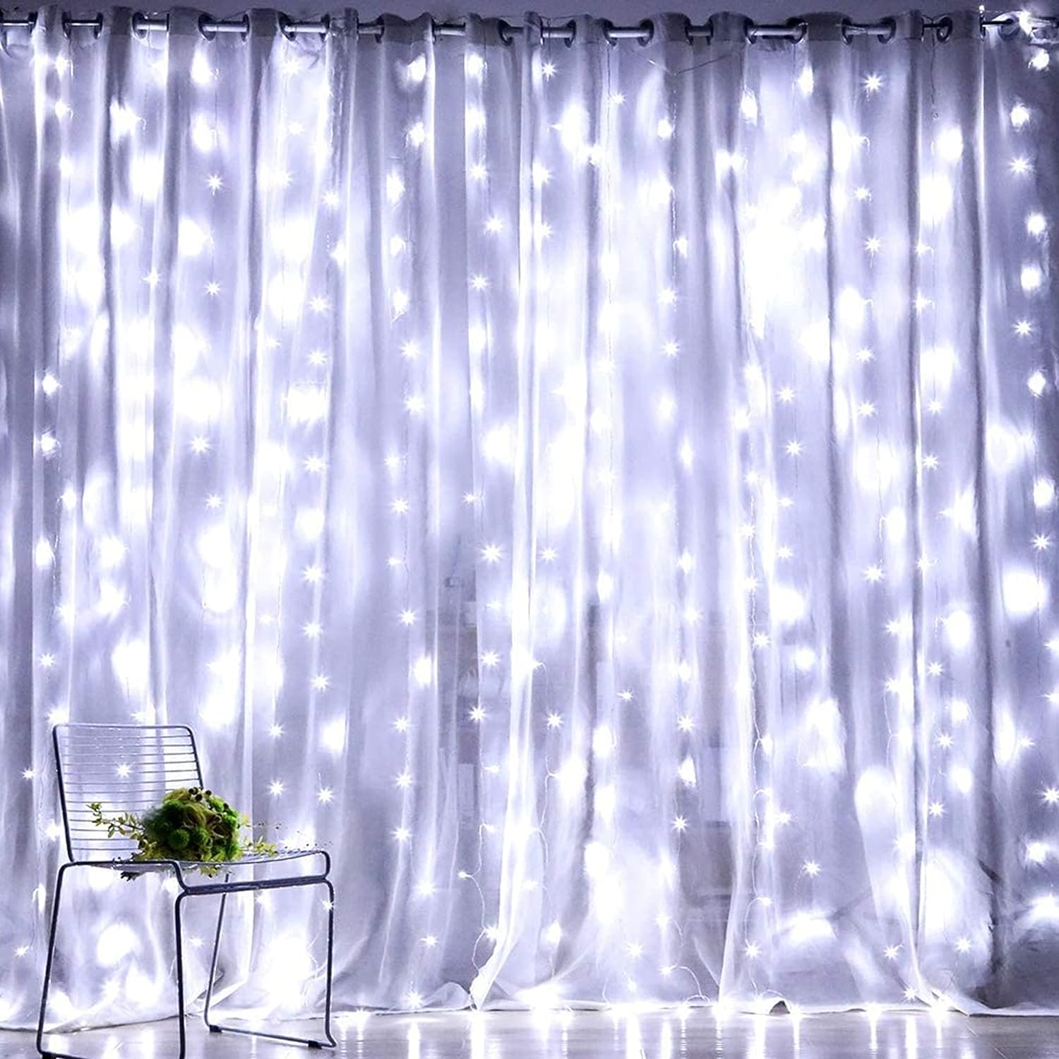 Dazzle Bright Curtain String Lights, 300 LED 9.8ft x 9.8ft 8 Lighting Modes Fairy Lights USB Powered, Waterproof Lights for Christmas Party Wedding Outdoor Indoor Wall Decorations (White)