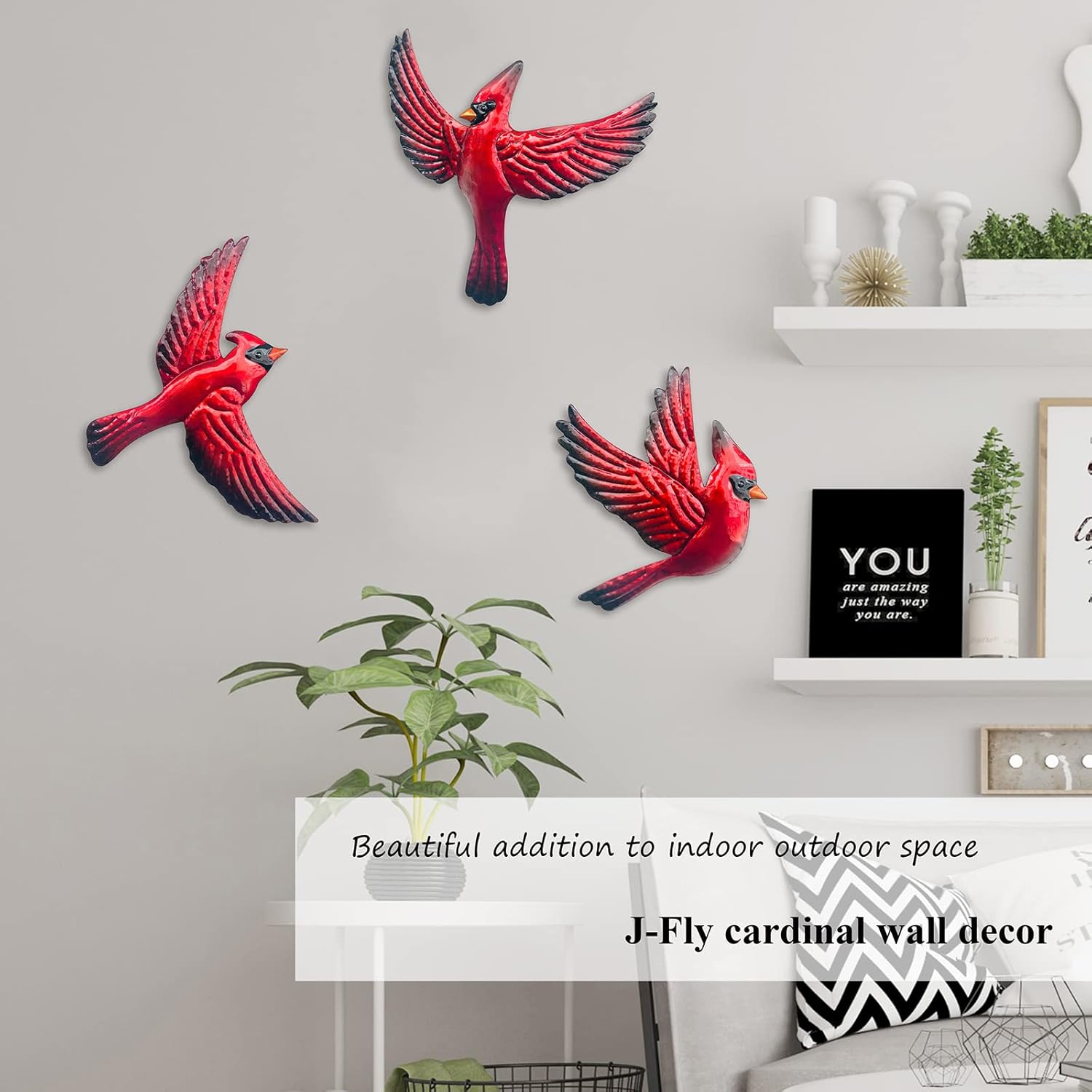 J-Fly Metal Red Bird Wall Decoration Bird Wall Hanging Decor Outdoor Metal Wall Art Cardinal Outdoor Decor Suitable For Living Room Bedroom Patio Kitchen Outdoor Fence Decoration 9 Inch