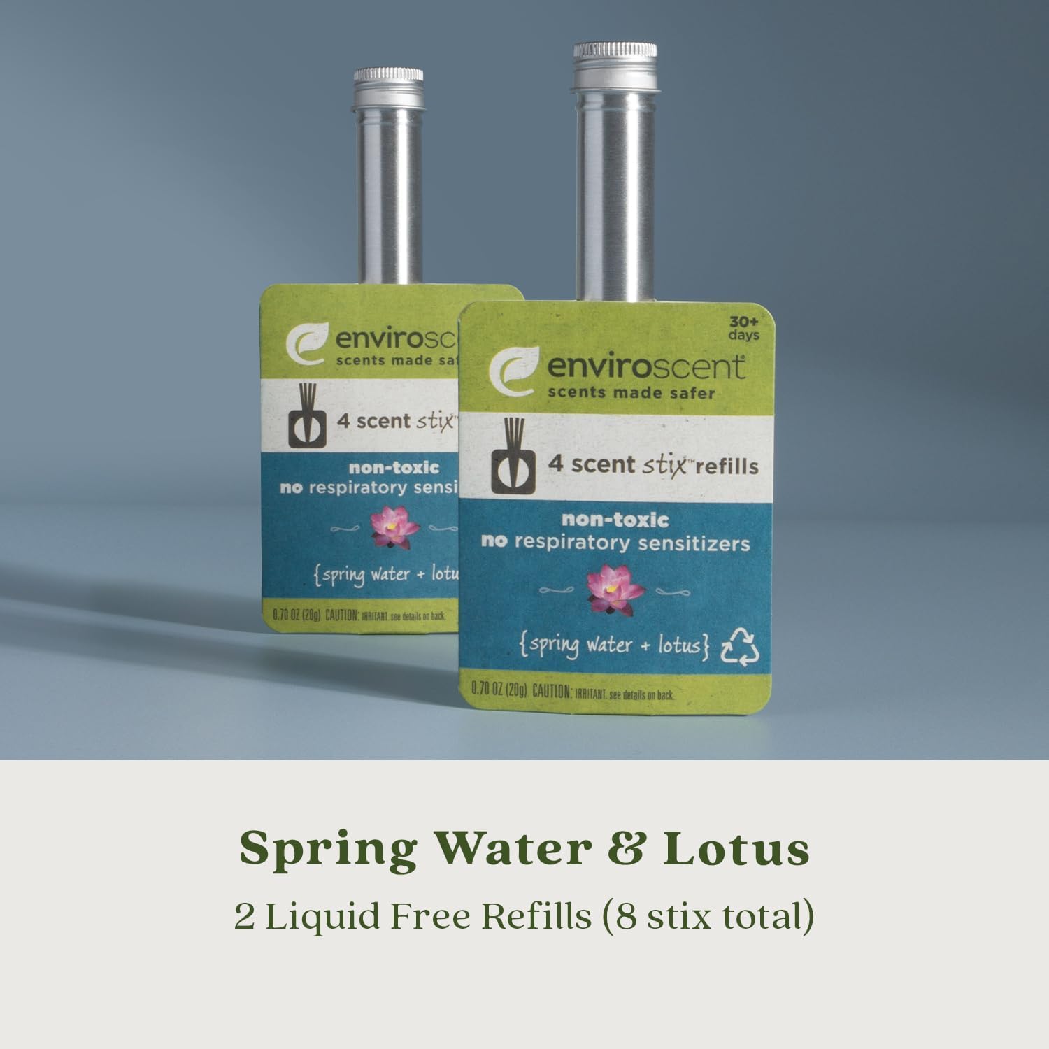 Enviroscent Non-Toxic Air Freshener for Home (Spring Water & Lotus) Essential Oil Diffuser | Home Fragrance Last Over 30 Days | 8 Scent Stix Refills