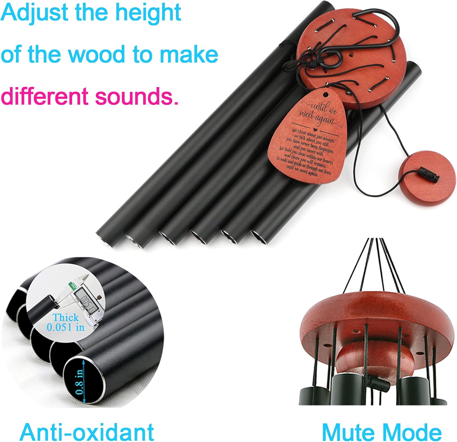• Premium Quality Memorial Wind Chimes: Made with high-quality aluminum tubes and a corrosion-resistant black anodized finish, these memorial wind chimes produce clear, beautiful tones. The bell holder, striker, and wind catcher are made from durable beech wood, and the entire structure is supported by a strong, weather-resistant nylon cord for lasting outdoor use