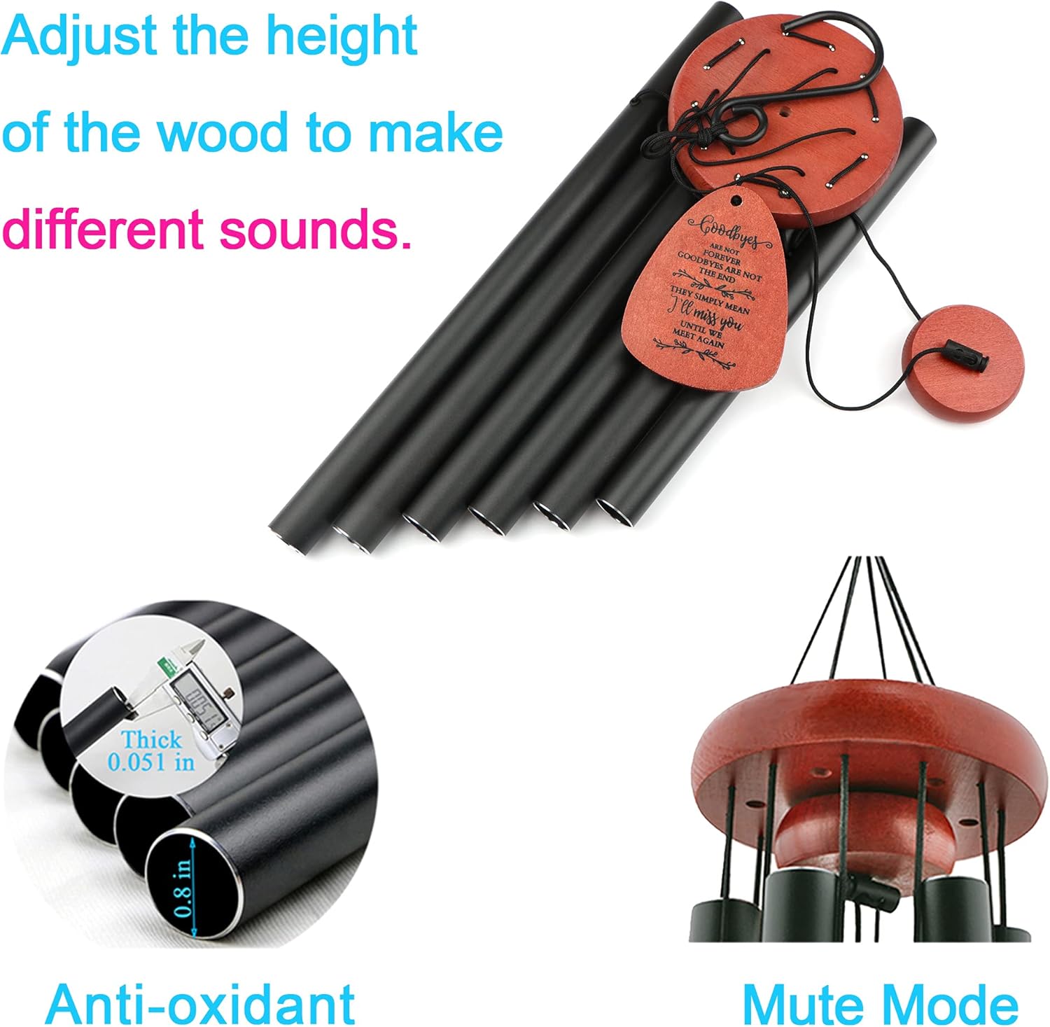 • Premium Quality Memorial Wind Chimes: Made with high-quality aluminum tubes and a corrosion-resistant black anodized finish, these memorial wind chimes produce clear, beautiful tones. The bell holder, striker, and wind catcher are made from durable beech wood, and the entire structure is supported by a strong, weather-resistant nylon cord for lasting outdoor use