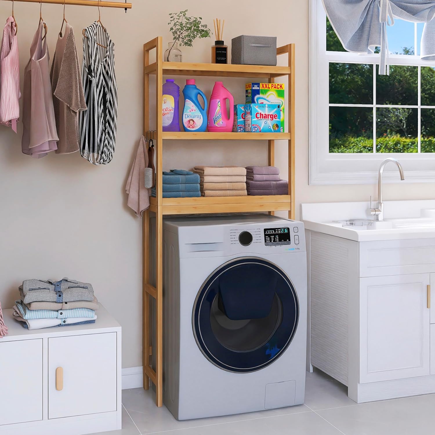• EASY TO ASSEMBLY & STURDY: With included illustration and tools, only follow the instructions and tighten the screws will set it up; All solid bamboo parts are fastened by galvanized screws, making this toilet rack super stable and wobble-free. In addition, included tip-over restraints kit can make your bathroom accessories and rack safer