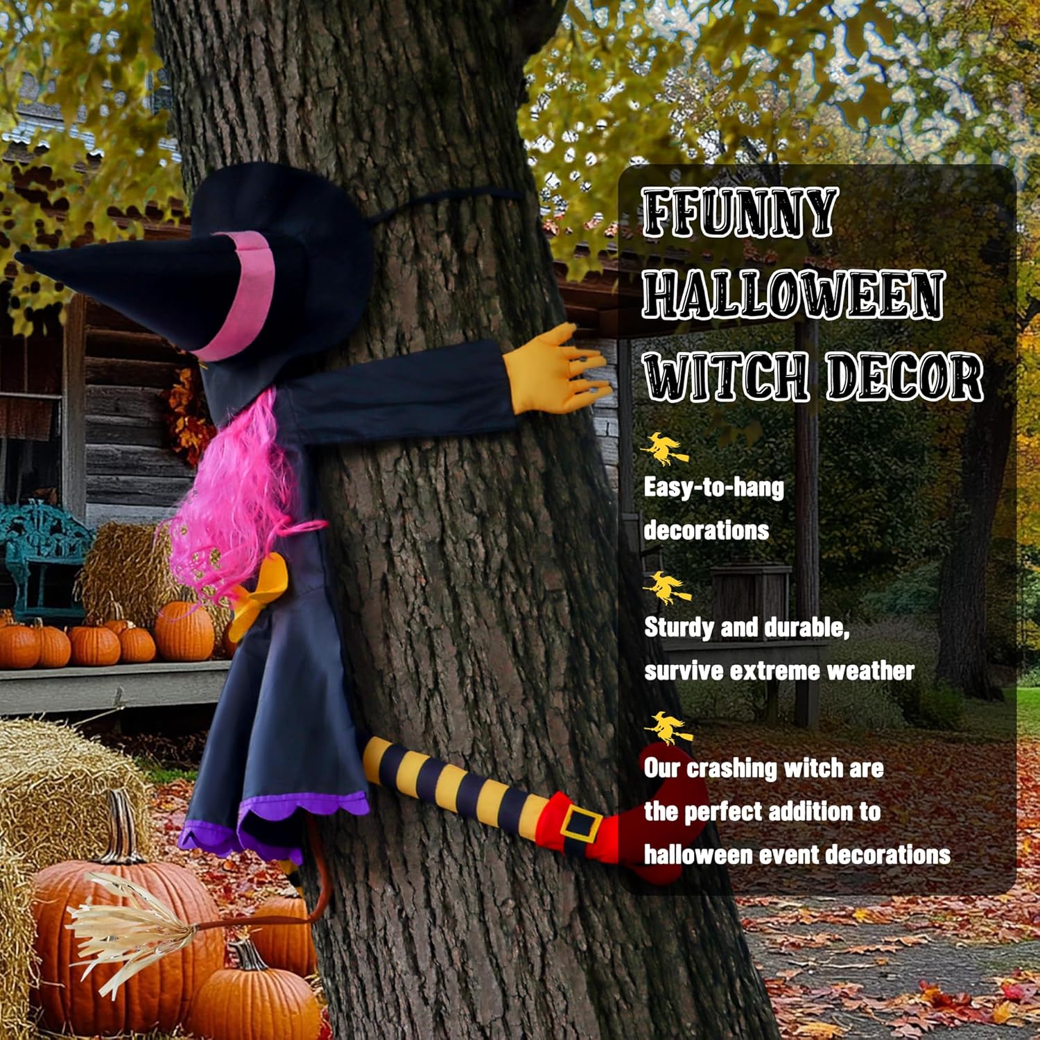 • Spooky & Fun Halloween Décor – This silly witch looks like she crash-landed right into your tree, instantly creating a playful and spooky scene. A perfect way to make your yard stand out this Halloween.