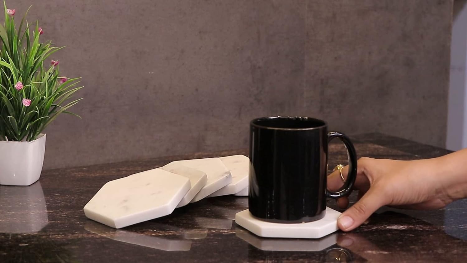 • PROTECT YOUR FURNITURE: Tired of cleaning smudges off your precious furniture, these marble coasters keep the stains/ water rings/ moisture away keeping your dining table or your kitchen countertop clean. Enjoy your favourite drinks, cocktails, margarita on your cherished table or desk as these coasters don’t mess up the table.