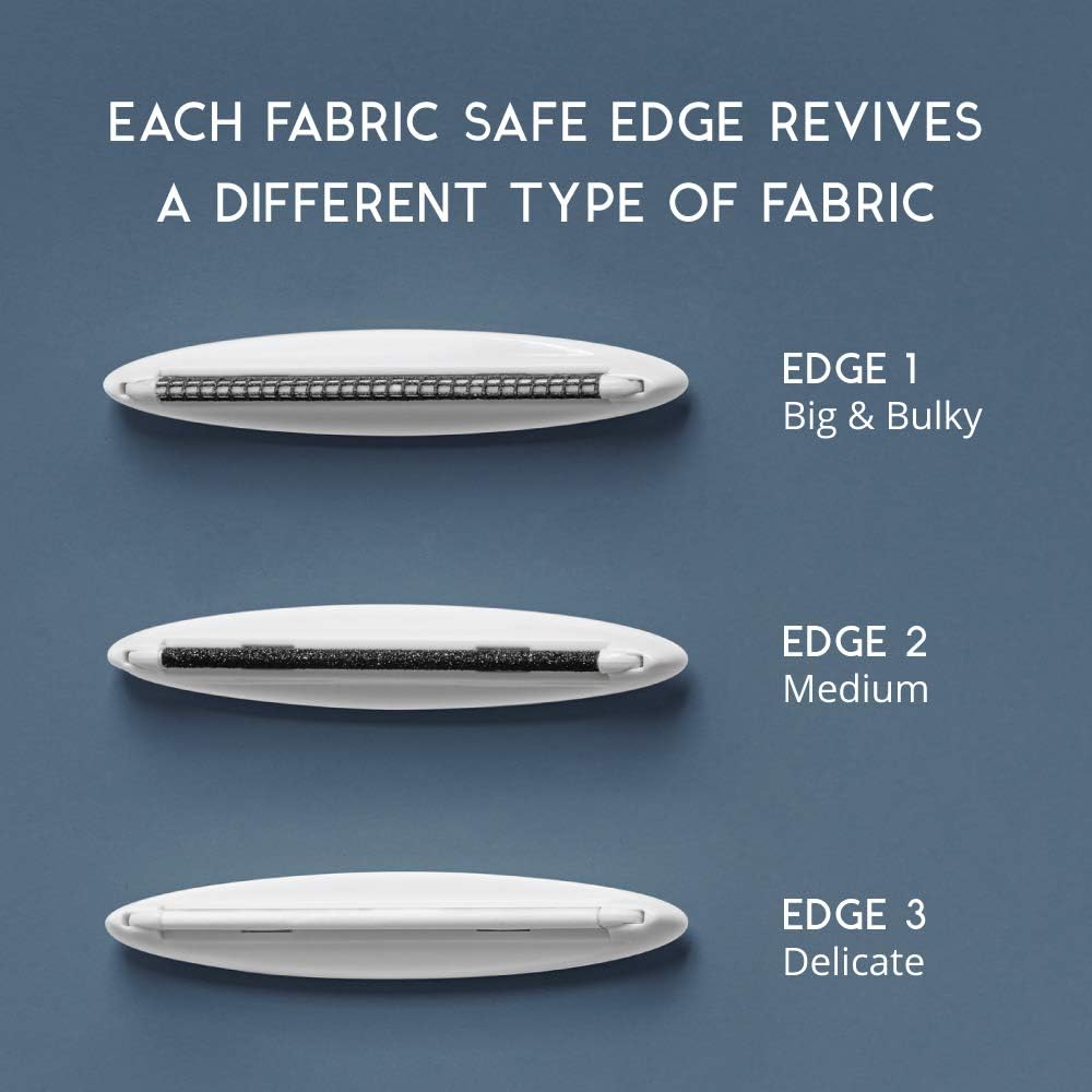 • SAVE YOUR FAVES: Quickly and gently remove fabric pills, bobbles, and pet hair from clothing and furniture with this 2-in-1 sweater shaver and lint brush. Use its 3 interchangeable edges to safely depill sweaters, coats, sofas, and fabrics of all types: cashmere, wool, cotton, fleece, acrylic, rayon, polyester and more.