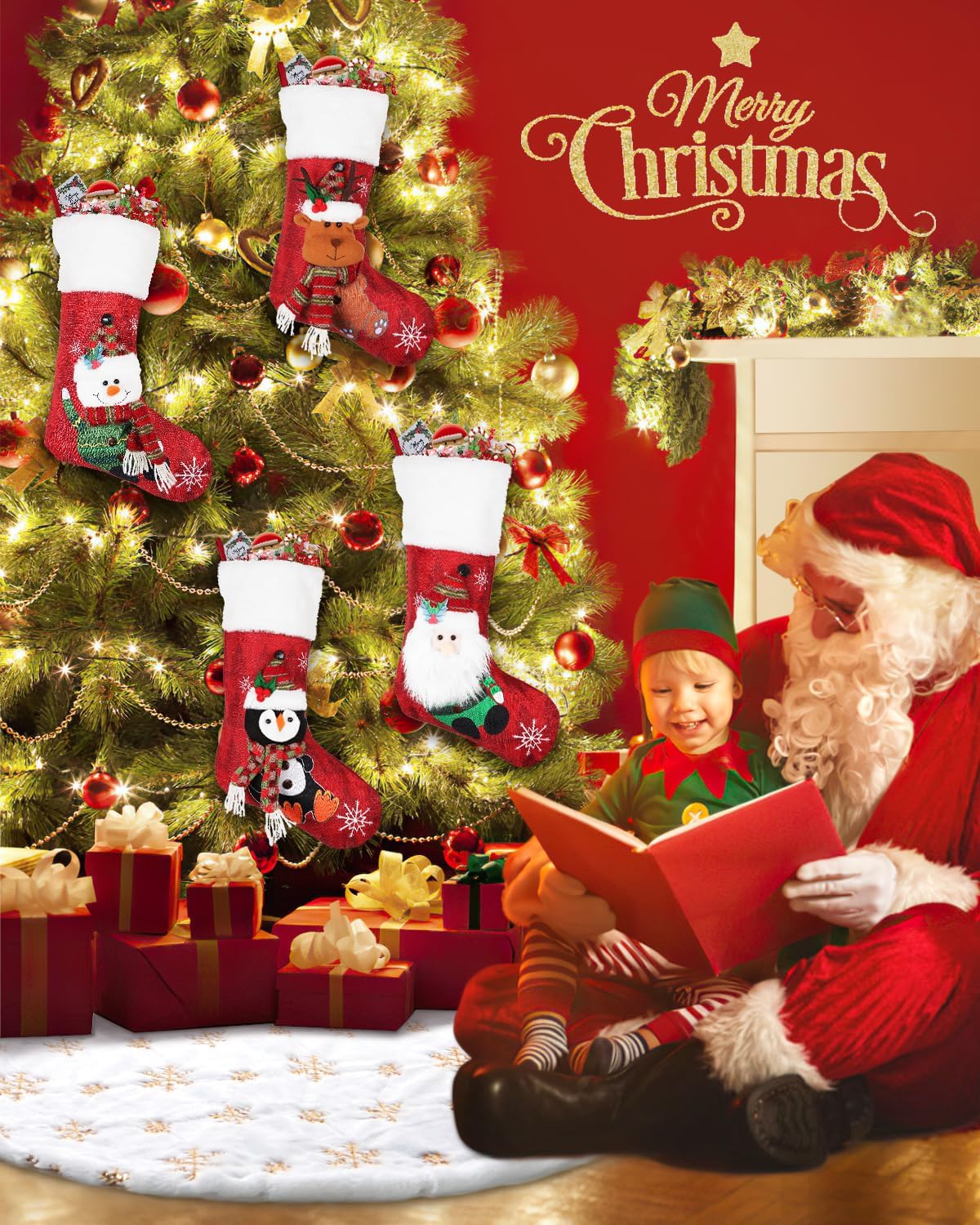 • Soft and warm material: This Christmas tree skirt is made of artificial fur, double-layer design, non-woven fabric on the back, white artificial fur and silver sequins embroidered snowflakes on the front, high-quality plush fabric material, soft and comfortable texture. The diameter of 122 cm/48 inches is very suitable for all kinds of trees from 5 feet to 7 feet, from traditional to artificial types