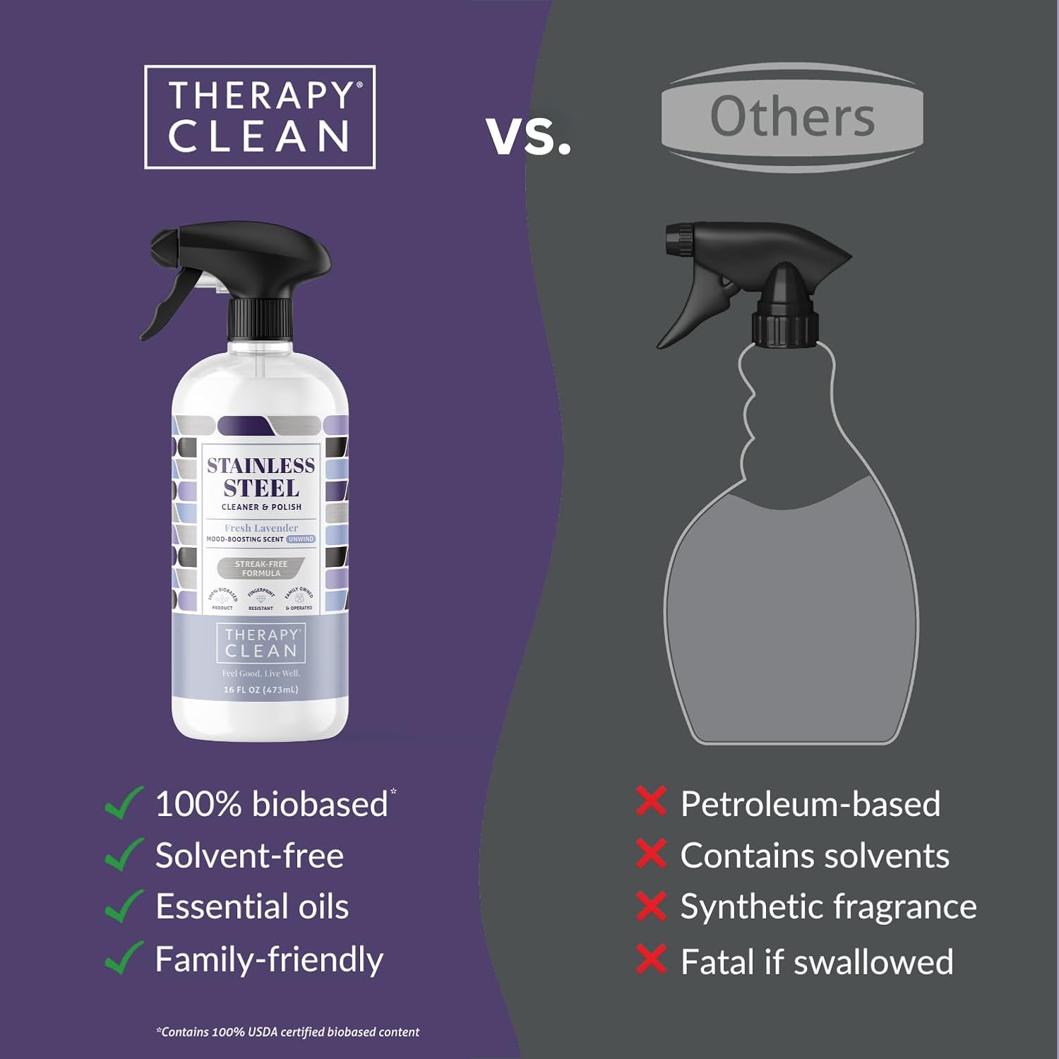 Therapy Stainless Steel Cleaner and and Polish Wipes Bundle with Microfiber Cloth - Remove Fingerprints from Appliances, Sinks, Fridge, Grill, Refrigerator, BBQ, Stove - Stainless Steel Spray and Wipe