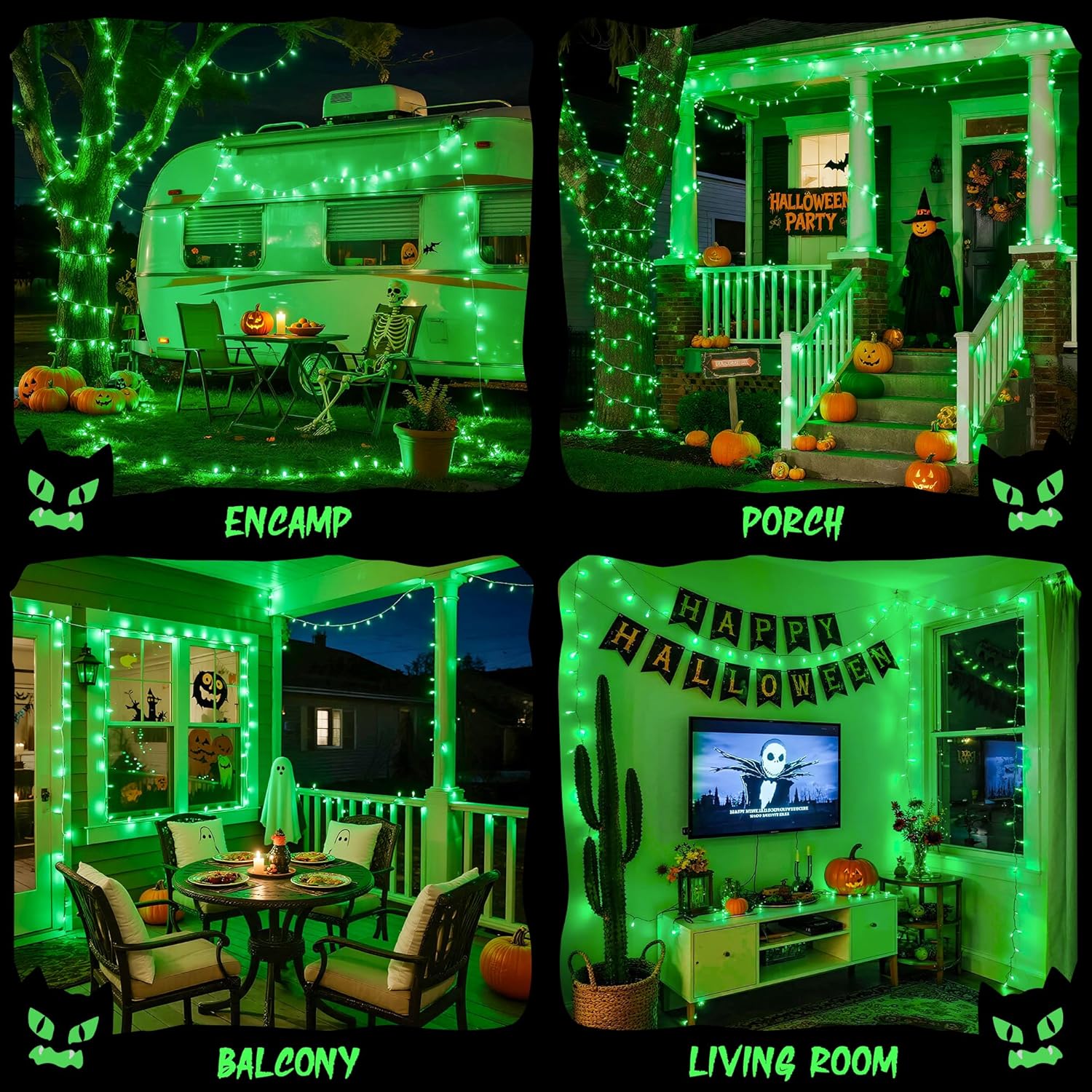 • PORTABLE & WATERPROOF & SAFER : Green Halloween lights no need socket, only 3 * AA batteries (Not included) are enough. So you can bring them anywhere. No worry about rain or snow getting into the battery pack as it has a seal strip, but don't soak. Halloween lights are also safer than plug-in string lights. People can rest assured to touch and play