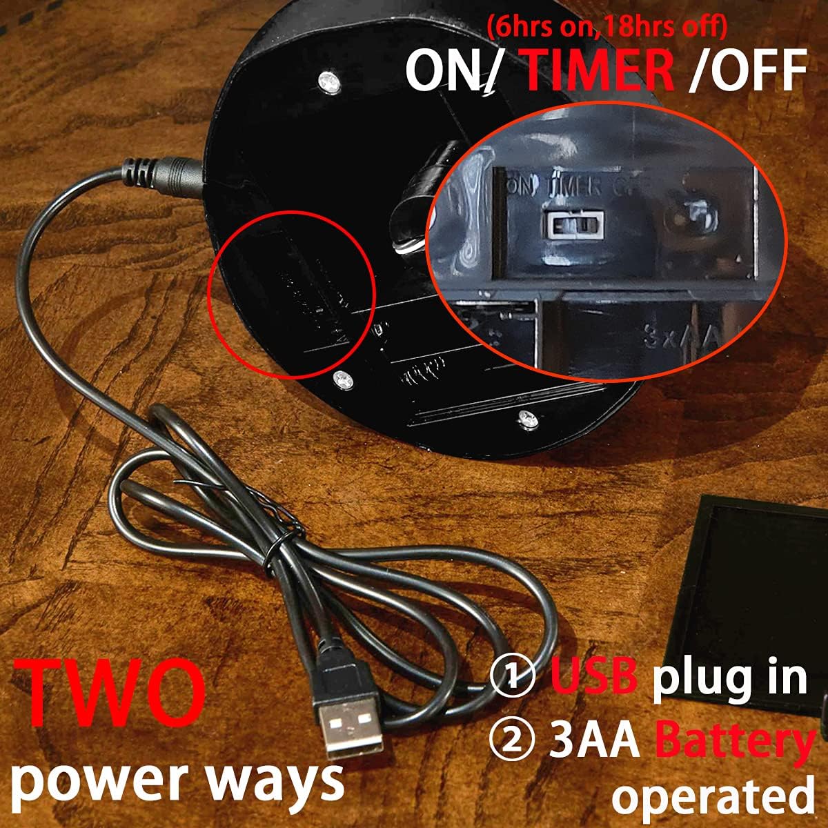• 🎃【Two-way power】① Works with 3 AA Batteries.(Battery NOT included)② Works with a corded USB charger.(Charger NOT included), it works with 4.5V or 5V charger plug.