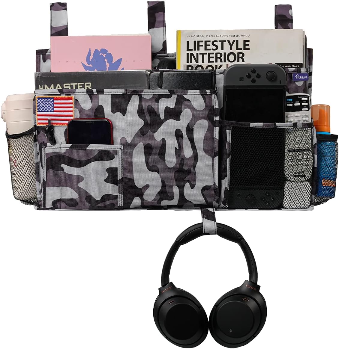 • Great Design: The hanging organizers have three adjustable heavy-duty hook and loop fastener belts that can be firmly fixed on the bed rail, and bed caddy organizers also can be hung stably on the head of the bed. The back of the bedside pocket with cardboard support is durable and can bear heavy weight. Easy to use, no assembly required.