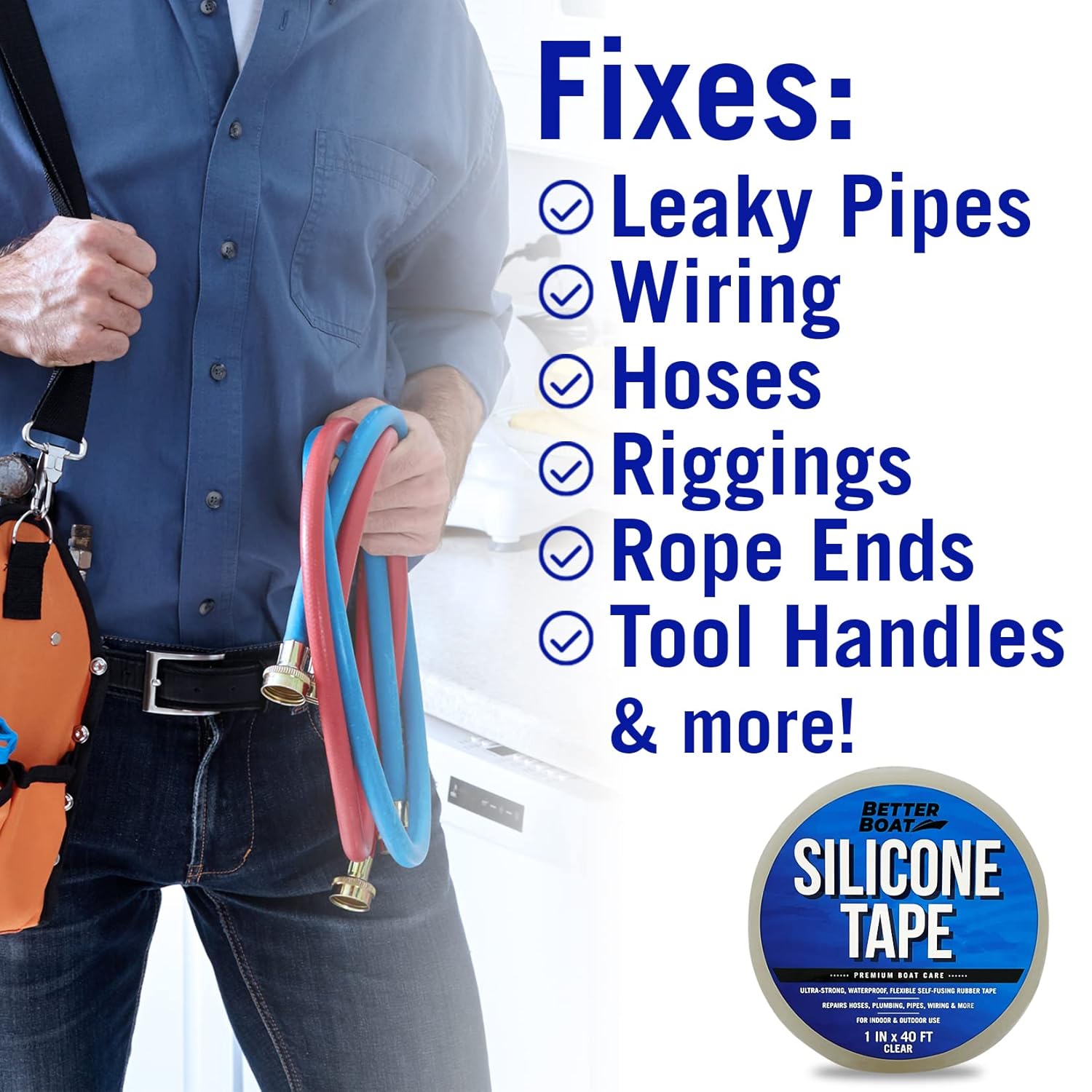 Clear Heavy Duty Silicone Tape, Self-Fusing Rubber Hose and Plumbing Water Pipe Repair Seal, Coax Electrical or Waterproof Tape for Leaks, 40ft