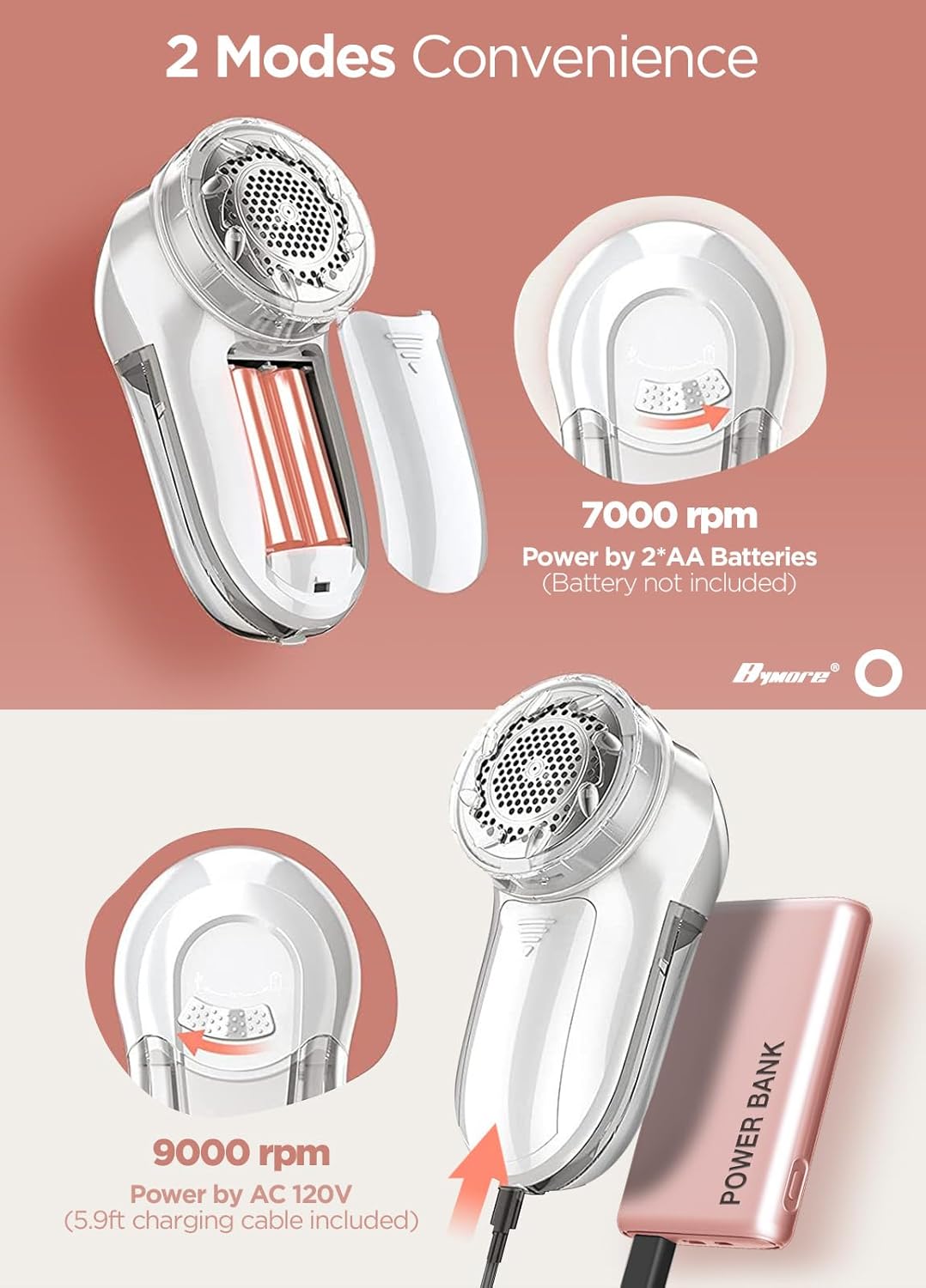 • 2IN 1 Sweater Shaver: Handy batteries travel friendly or 6FT AC to meet the convenience demand by simple slide left or right on the sweat shaver