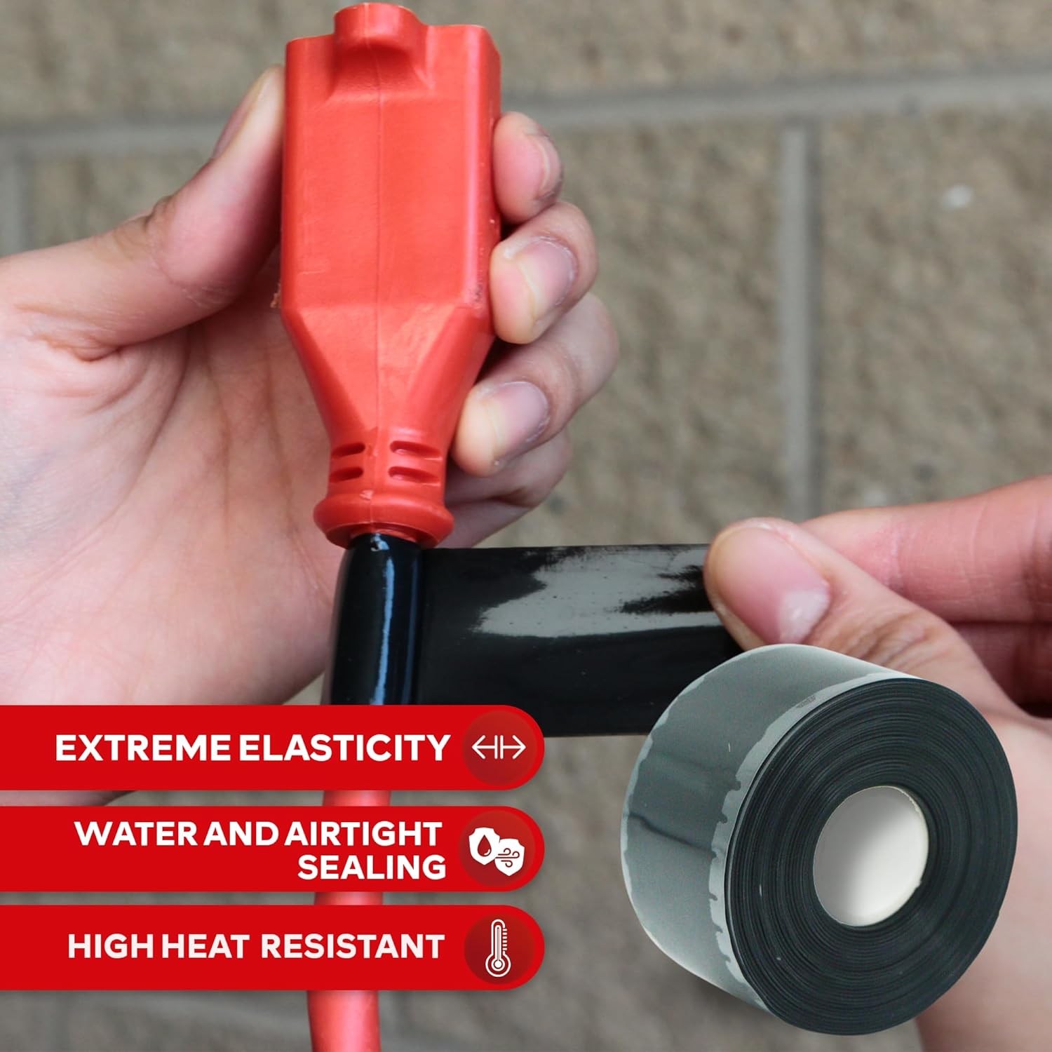 • IDEAL FOR QUICK EMERGENCY REPAIRS. Our Self-Fusing Silicone Tape PRO is made from 100% Silicone that wraps around itself without the need of any adhesive, providing instant airtight and waterproof sealing to leaky hoses, pipes, electrical wiring, outdoor coax, wiring harnesses, and other fittings and connections. This stretch and seal tape is a must-have for plumbing, leak repair, and car or boat repair kits.