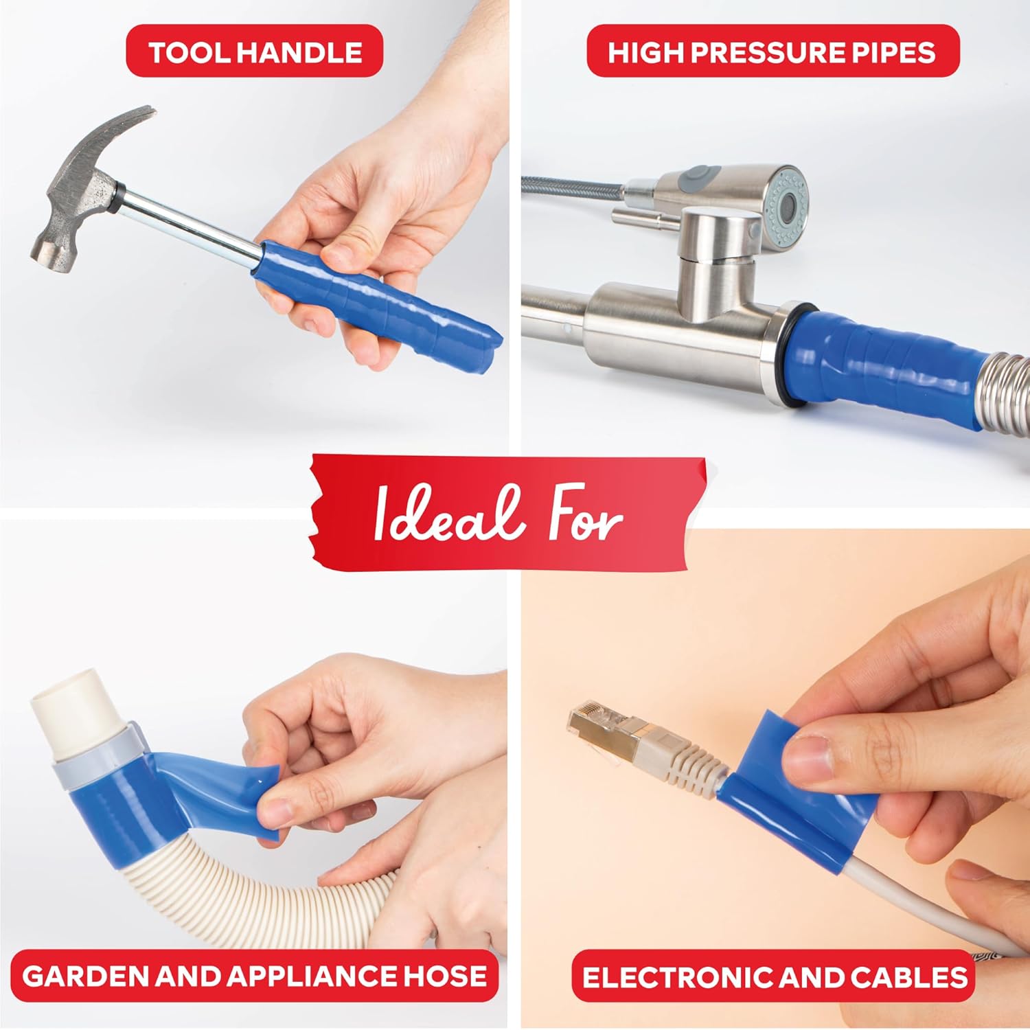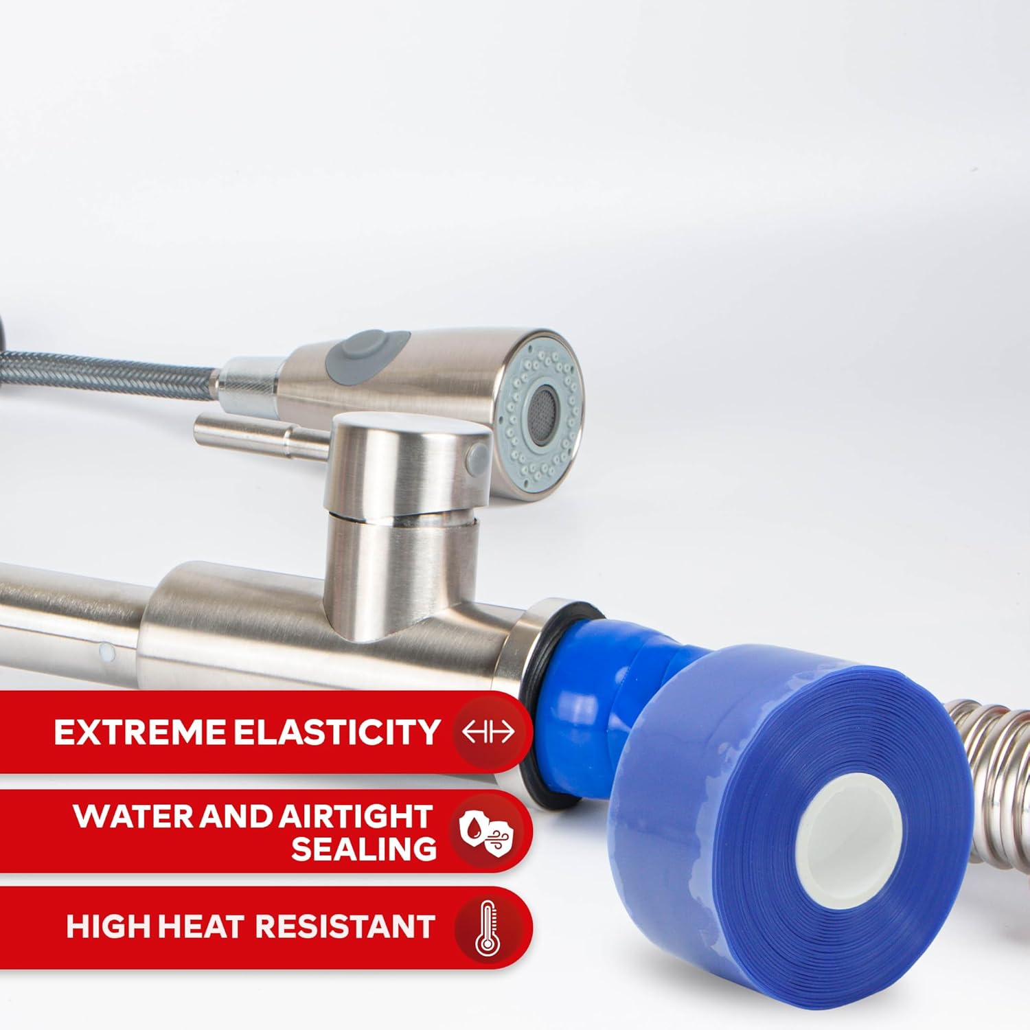 • DESIGNED TO TAKE A BEATING. We created our Blue Silicone Plumbers' Heat and Leak Tape to develop its tensile strength the more you stretch it, thus preventing it from breaking or puncturing against extreme temperature and pressure. This is why it works great for outdoor repairs as a self-sealing silicone tape and self-bonding tape for high-pressure pipe leaks!