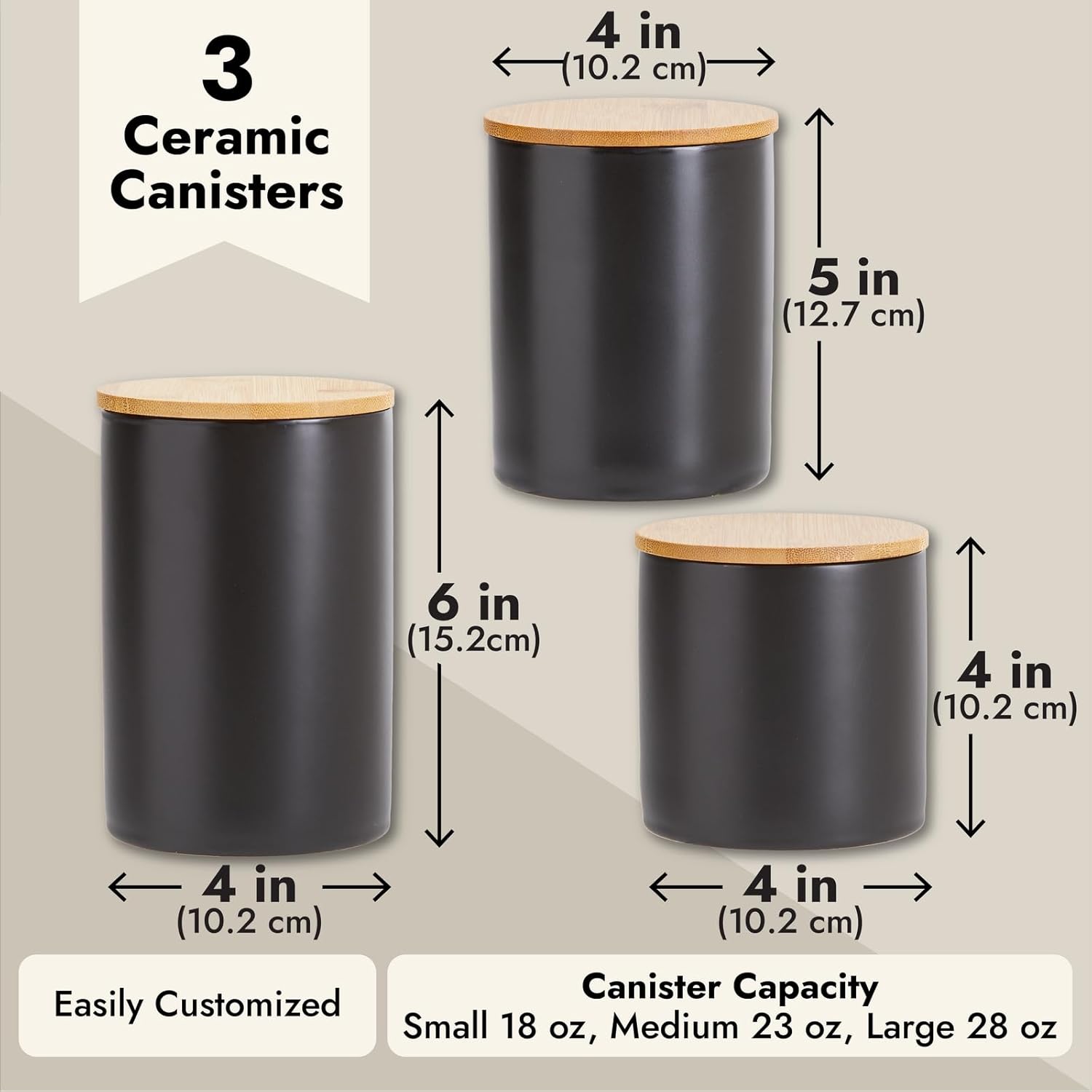 • Elegant Kitchen Jars: Enhance your kitchen with the Farmlyn Creek set of matte black ceramic jars, perfect for stylishly displaying on your kitchen counter or coffee bar. These ceramic containers with lids offer an attractive solution for sugar and coffee storage