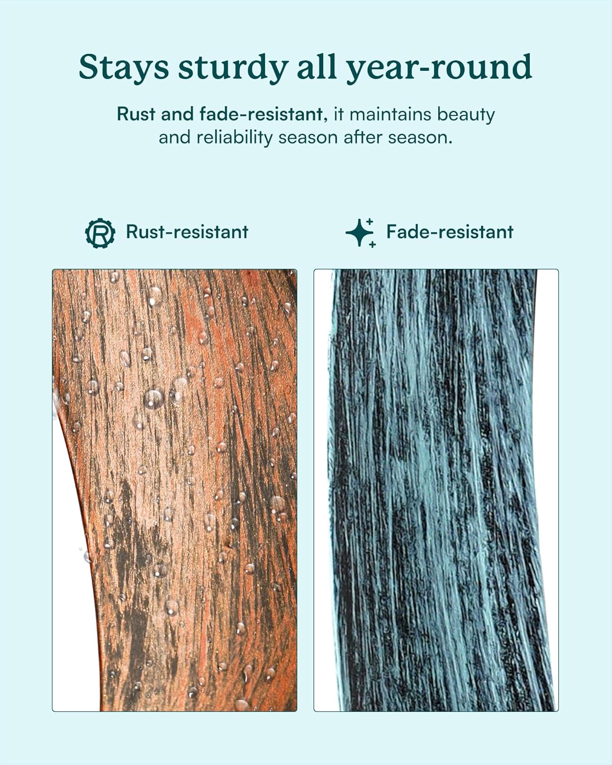 • 【DURABLE OUTDOOR METAL DECOR】Made of durable metal with protective coating finishes. UV, RUST, and FADE RESISTANT. The all-season decorative spinner can be cleaned easily to keep its reflective shine and rustic appearance. Long-lasting use.