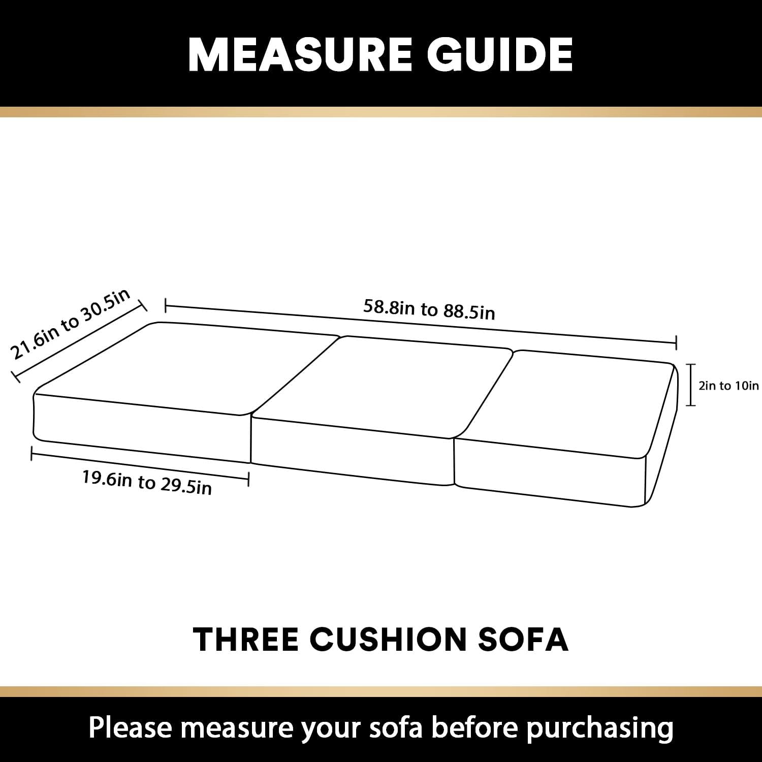 • GREAT FIT:3 piece seat cushion covers included. Each cushion cover measures: 19.6-29.5" length, 21.6-30.5" width and 2-10" thickness (height). PrinceDeco couch cushion covers are as close to custom as you can reasonably purchase. High recommended for both leather and cloth furniture.