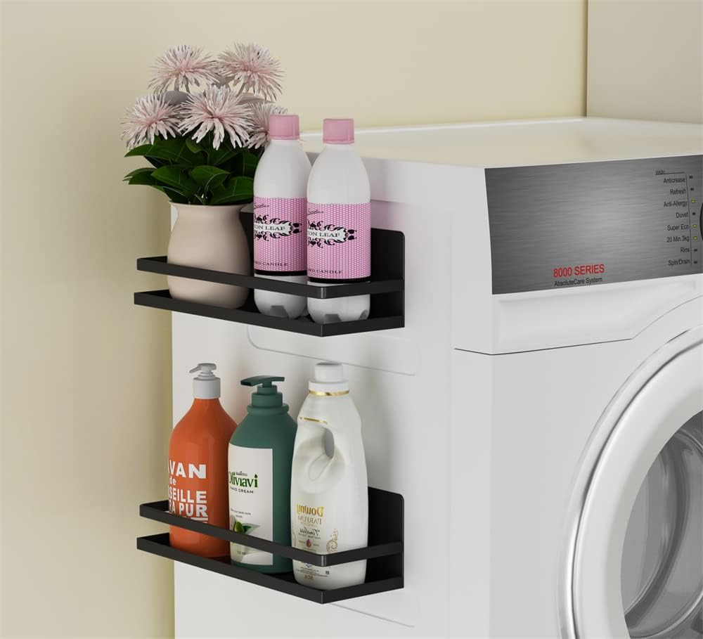 • 【QUALITY DESIGN】The magnetic shelves made of high quality thick steel plate for durability.Super strong magnet on the whole back, paint treatment, will not rust. Matte finish on the surface, safe and healthy. Smooth rounded edge design is safe and comfortable to touch.The shelf can carry up to 12 lbs.