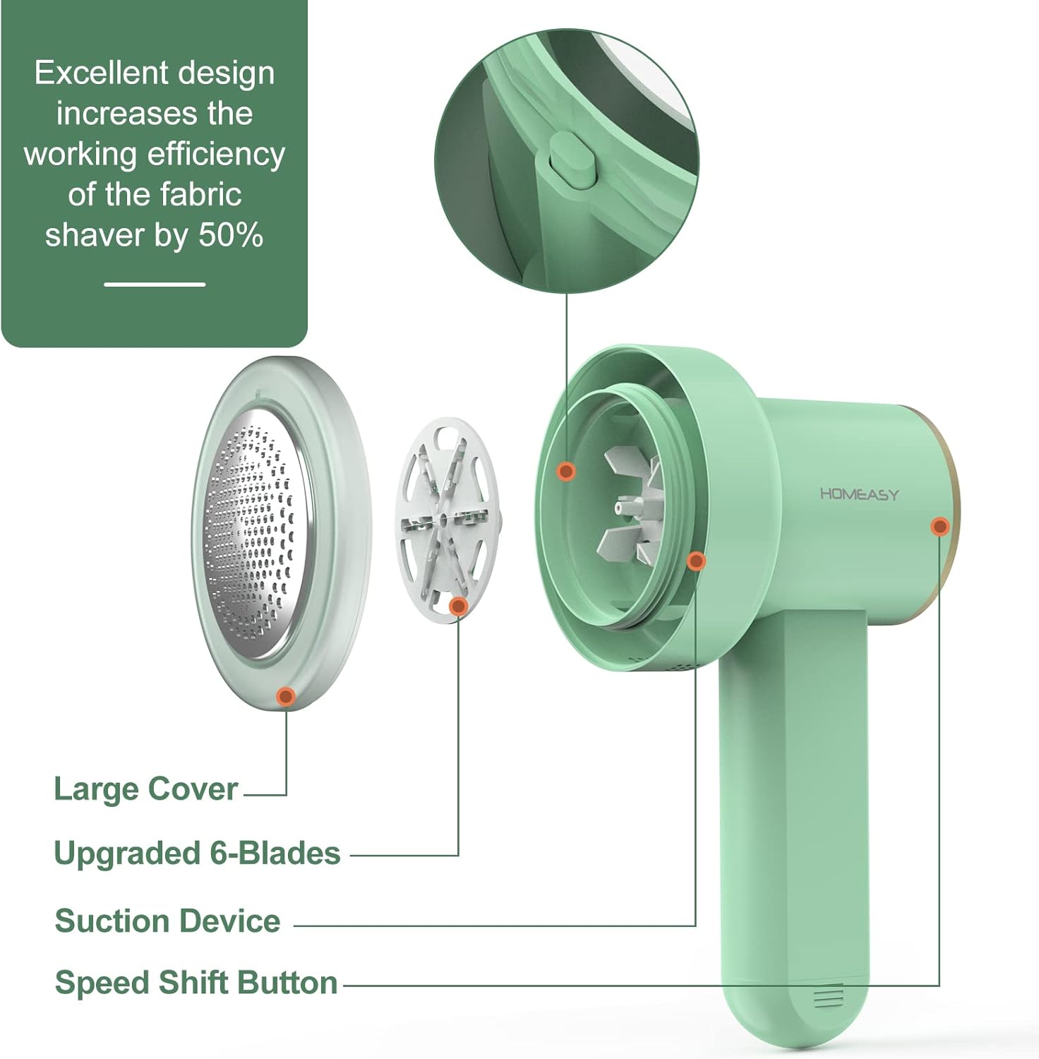 • 2. Efficient Lint Shaver for Furniture - Our sweater lint remover comes with 3 speed settings (I/II/III). Firstly, this fabric lint pill shaver mesh cover has 3 sizes of holes, which can quickly clean up hair balls of different sizes. Secondly, compared to the traditional 3-leaf blades, we equip with 3pcs rust-proof 6-leaf blades, which can greatly improve the working efficiency of the fabric lint remover and meet the needs of all fabric surfaces
