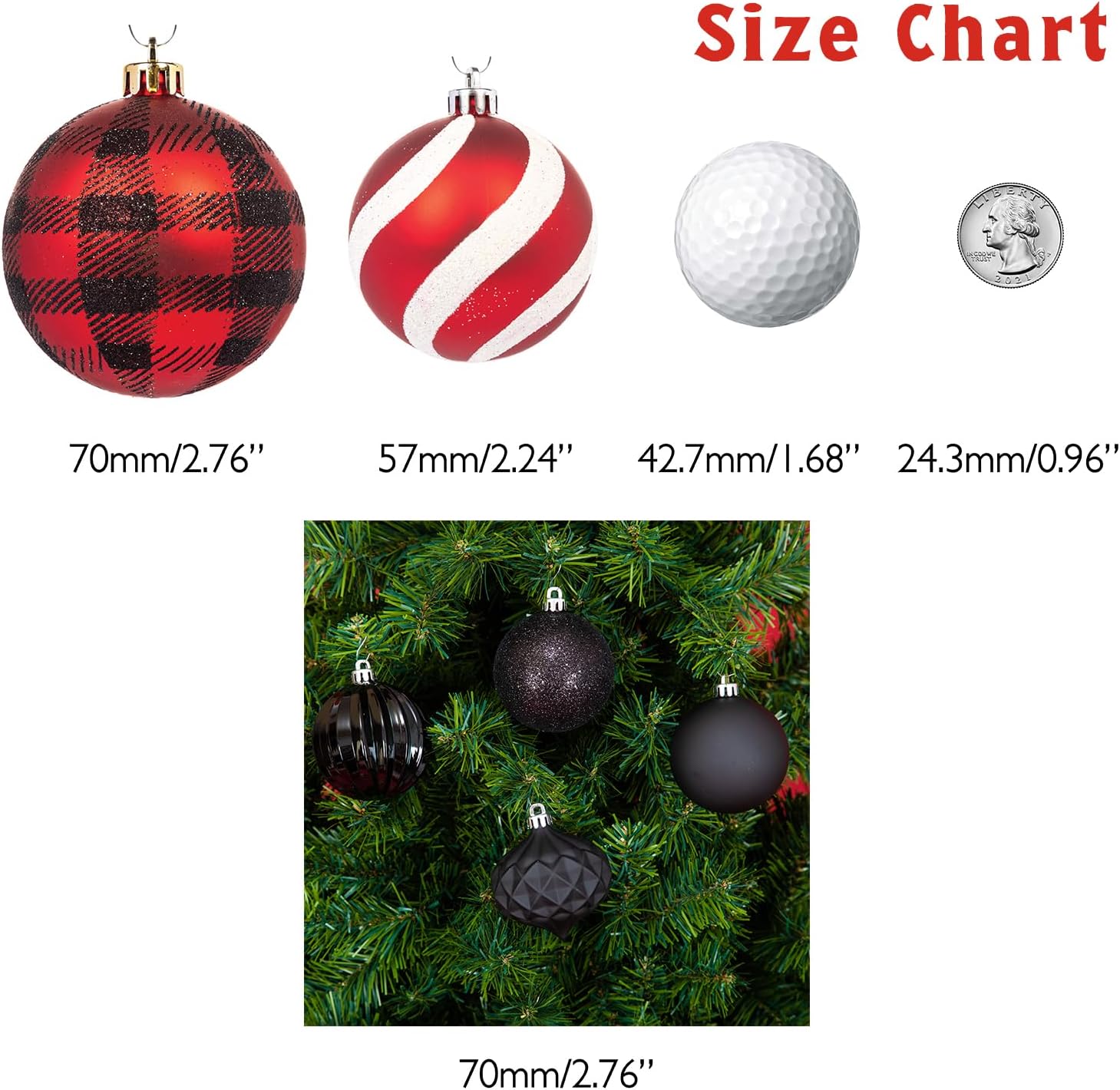 Every Day is Christmas Ornaments, Shatterproof Christmas Tree Ornament Set, Christmas Balls Decoration 35 Count (2.75"/70mm, Black)