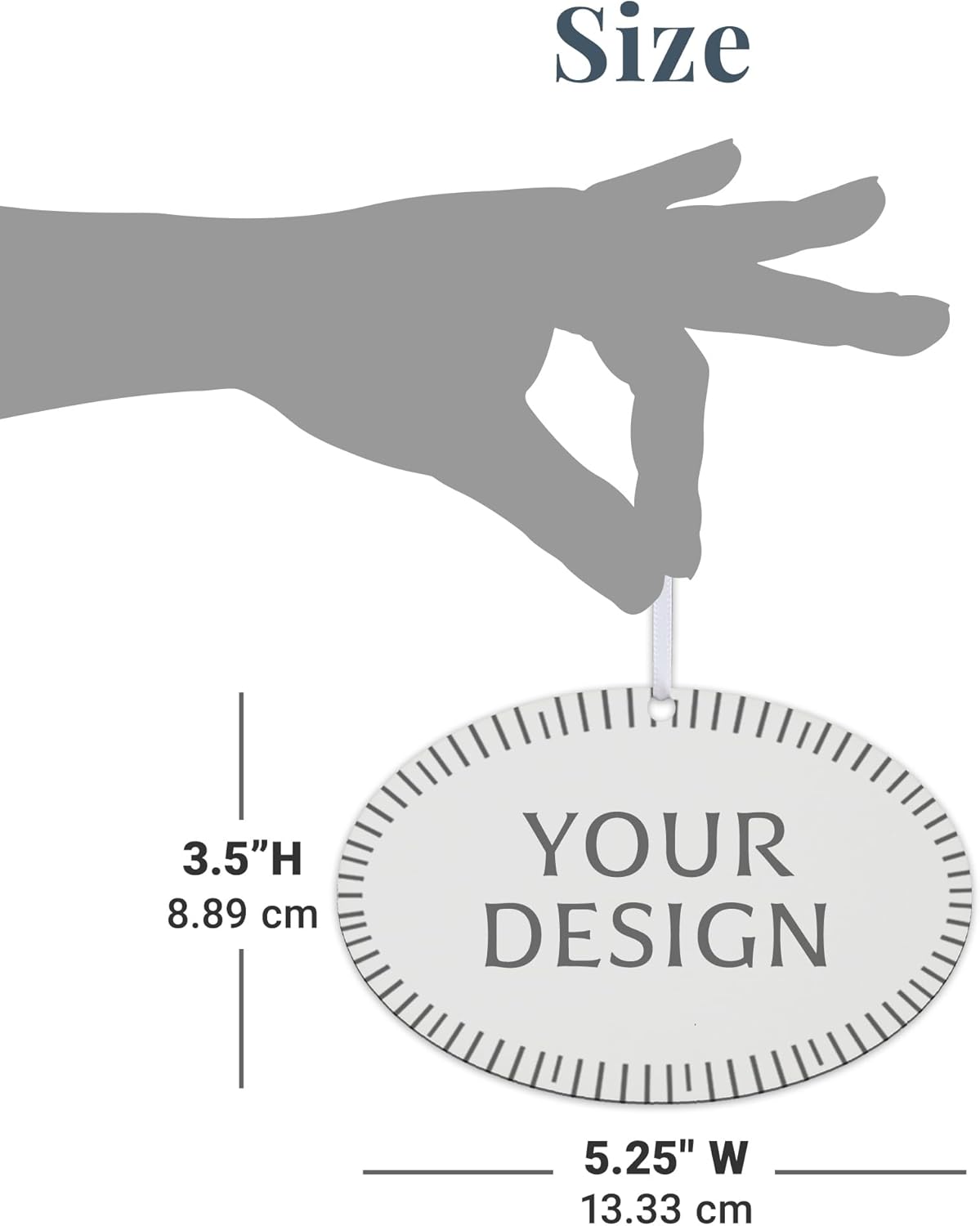 • PREMIUM QUALITY: Made of wood, this oval personalized ornament measures 3.5"Hx5.25"W. It's presented in a velvet drawstring bag ready for gift-giving and protective storage. Imported for final manufacture locally.