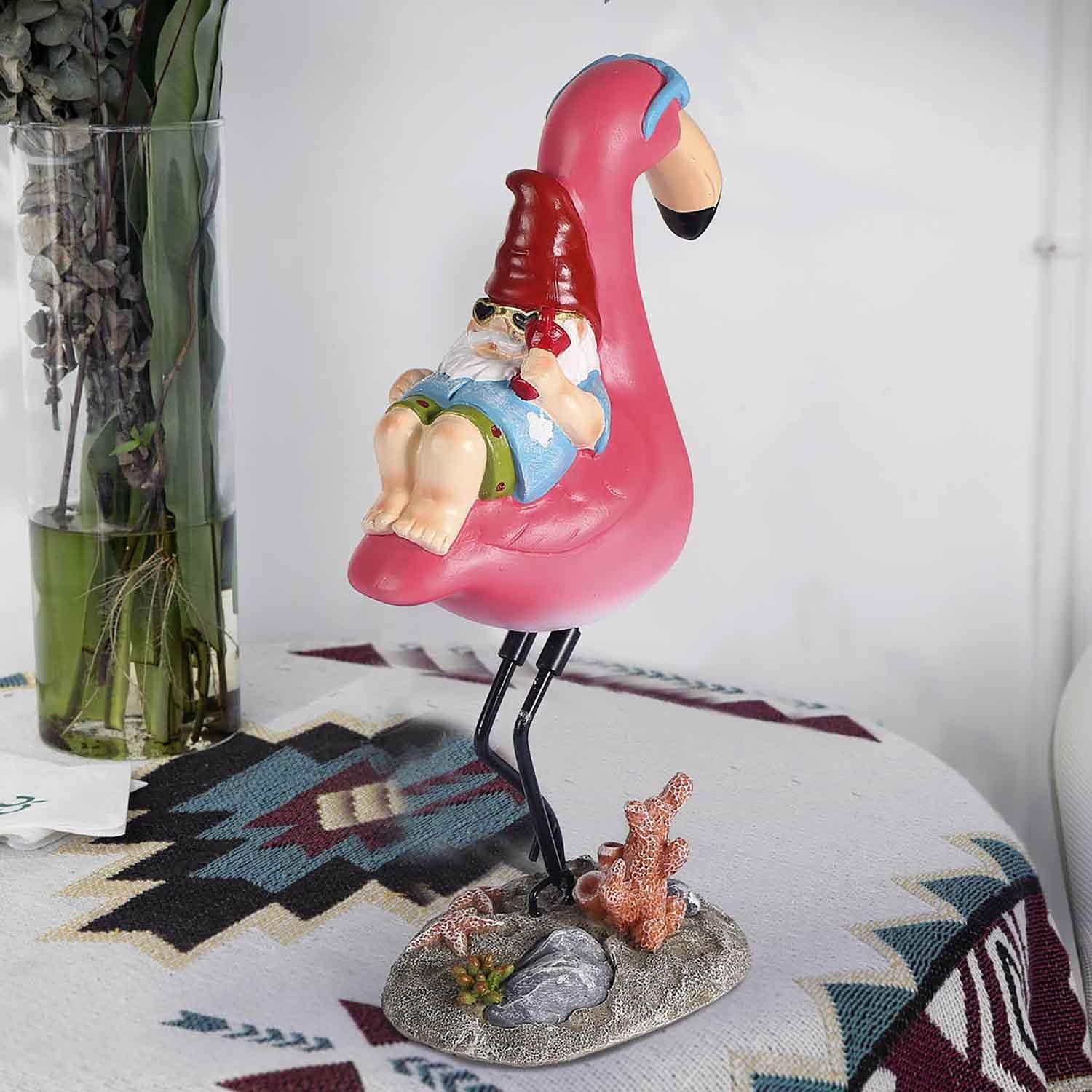 Gnome Garden Statue Funny Gnome Reclining on Flamingo Dwarf Figurines Resin Garden Gnomes Fall Decorations Outdoor for Patio Yard Lawn Porch Housewarming Ornament Gift