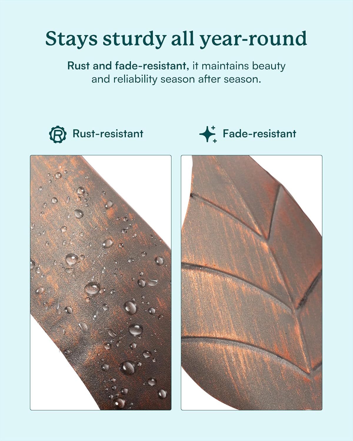 • STURDY OUTDOOR METAL DECOR: Made of sturdy metal with protective coating finishes. UV, RUST, and FADE RESISTANT. The all-season decorative spinner can be cleaned easily to keep its shine and rustic appearance. Long-lasting use.
