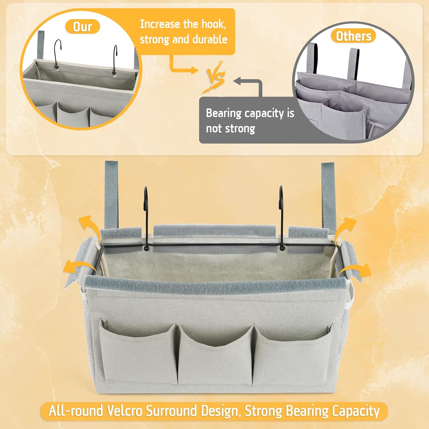 Bedside Storage Organizer with Fixed Straps and Water Bottle Holder for Home, College, Dorm, Bunk / Hospital Bed, Crib Bed Rails (Grey)