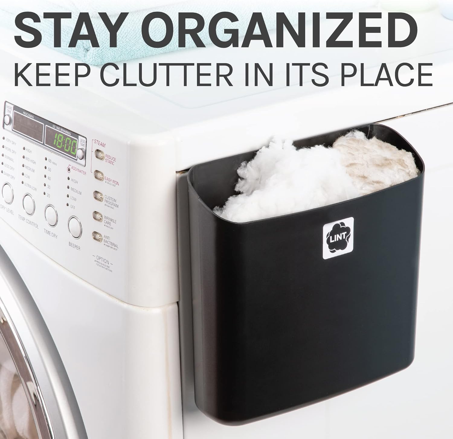 • The set of two lint bin/organizers come in a stylish matte black finish and work well with any laundry room, kitchen, workroom, or office décor.