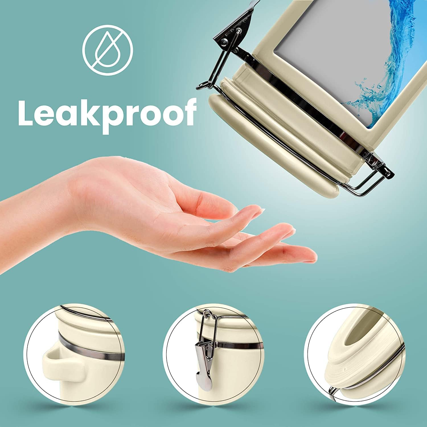 • AIRTIGHT SEAL FOR UNBEATABLE FRESHNESS: Featuring an airtight lid with silicone gaskets and a metal latch for perfect seal, this handy canister set will preserve the flavor of your supplies and keep them fresh and delicious. Perfect for any type of coffee, tea, sugar, flour, salt, candy, spices and so much more. Plus, they are 100% leakproof to prevent any messy spills