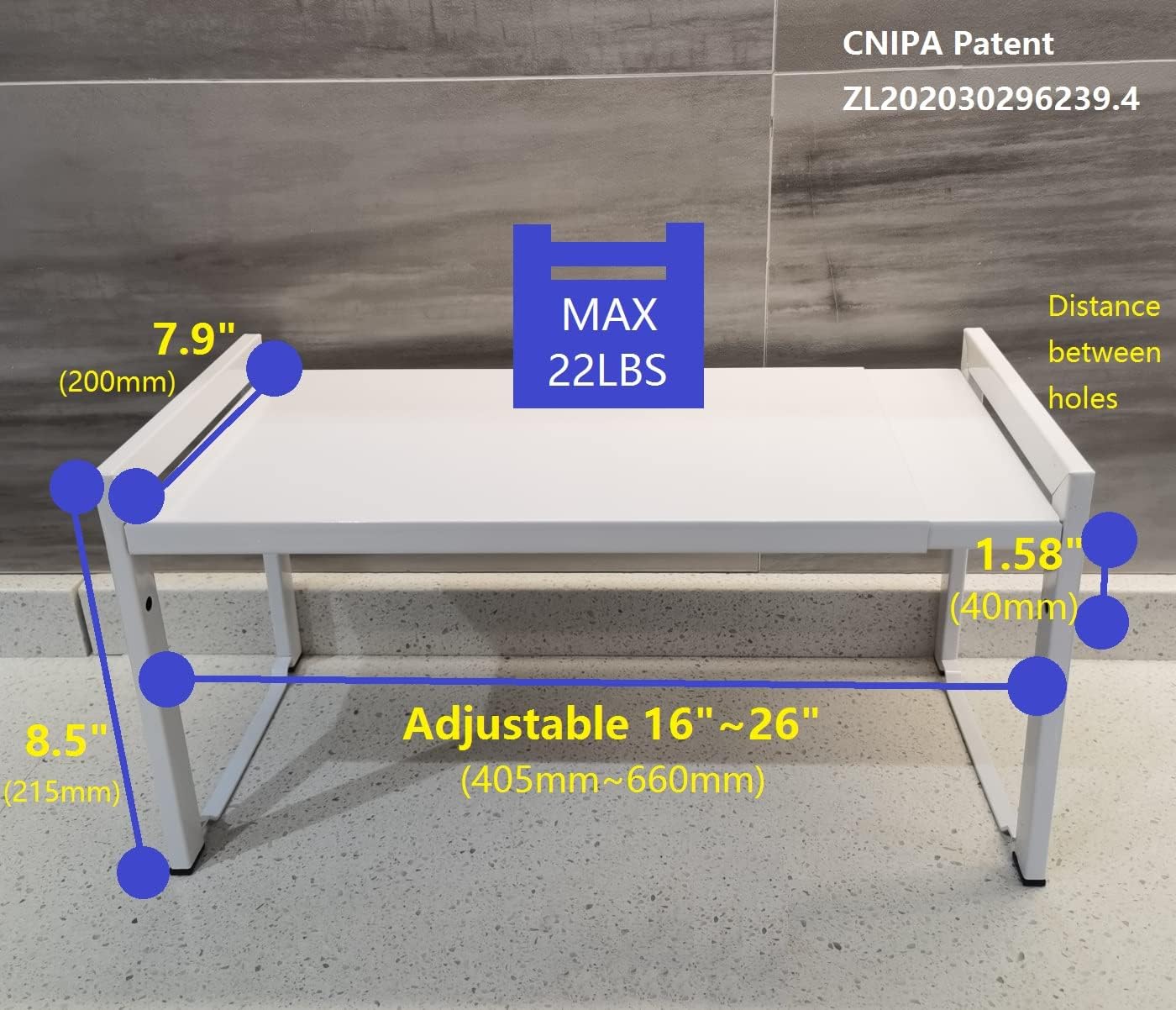 • Adjustable and Expandable Design: Versatile shelf adjusts from 16 - 26 inches (L), 7.9 inches (D), 8.5 inches (H), with a maximum under shelf height of 7.1 inches, making it perfect for maximizing space in kitchens, offices, bedrooms, or any room in need of organized storage