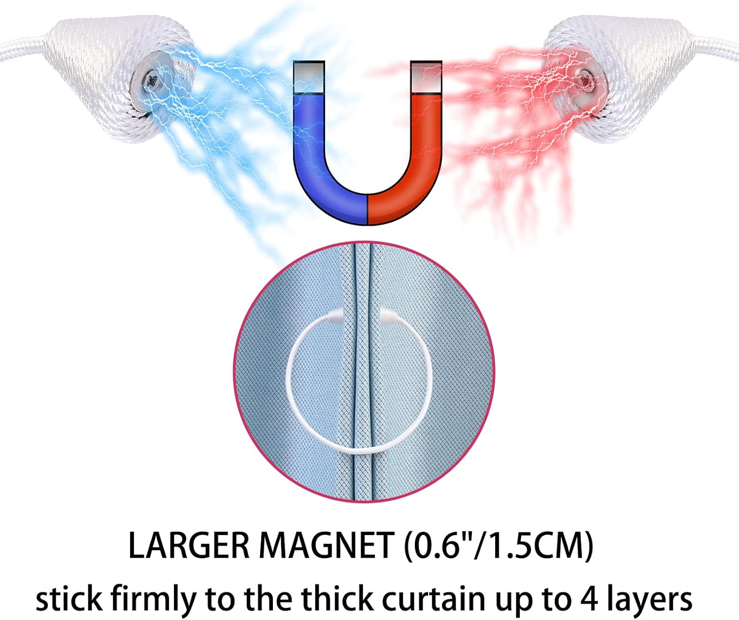 • WIDE APPLICATION: The length and binding method can be adjusted freely according to the thickness of the curtain. It is widely used in curtains in different places such as bedroom, living room, dining room, bathroom, kitchen, office, courtyard and so on. Different colors of magnetic drape tiebacks adorn your curtains, which can change different styles, giving the curtains a unique charm