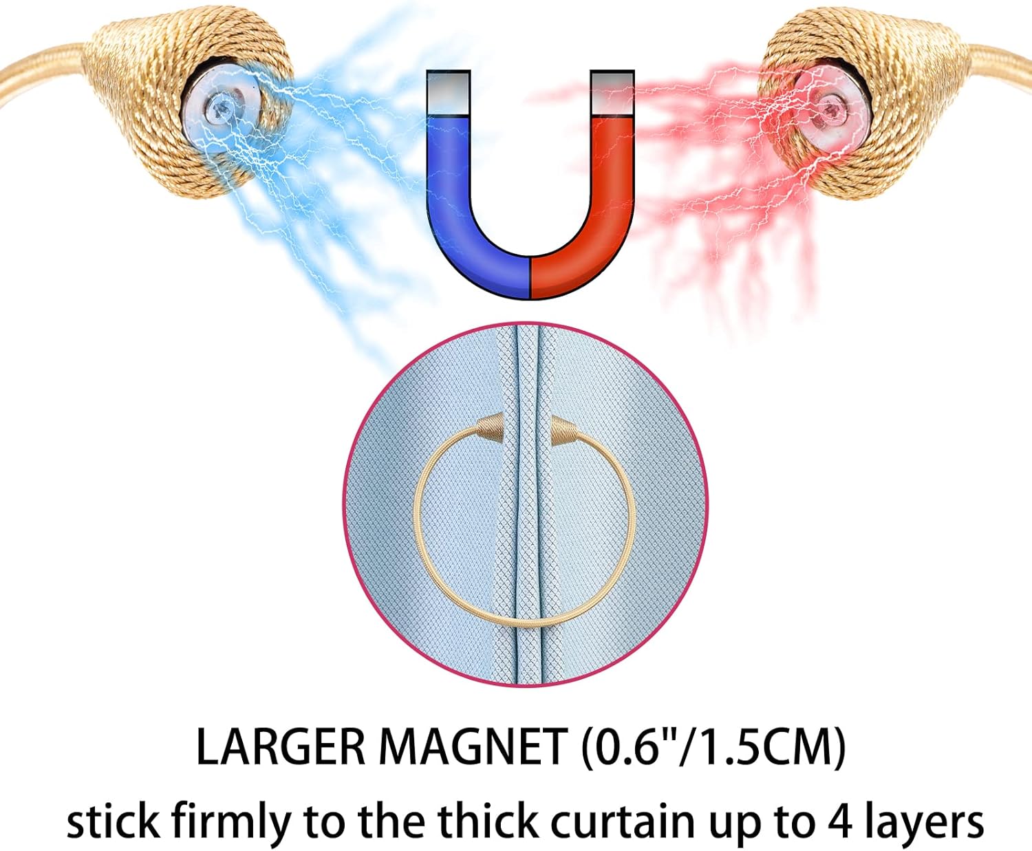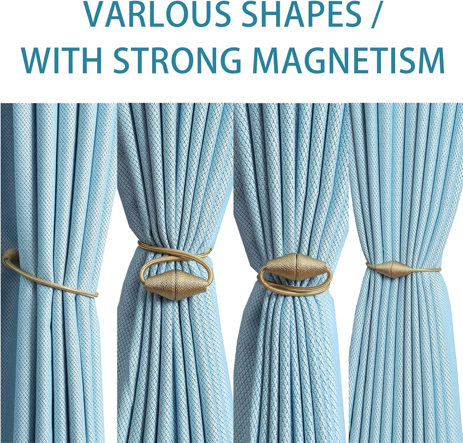 2 PCS Magnetic Curtain Tiebacks, European Style Convenient Drape Tie Backs Holdbacks for Thin or Thick Home & Office Window Draperies, No Tools Required-Gold Bright