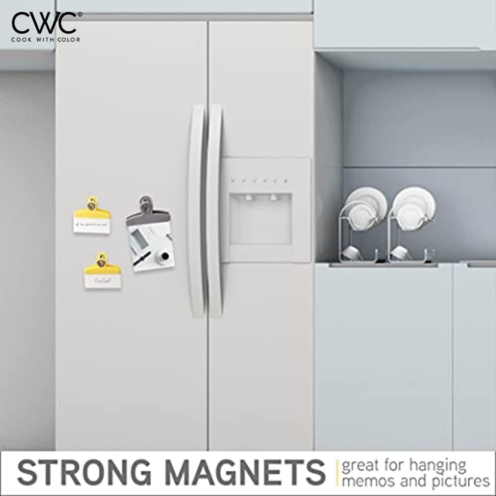 • Fun and colorful clips with a useful magnet in the back - keep these handy helpers readily available on your fridge for an easy reach and access. Can be used to hold light objects.
