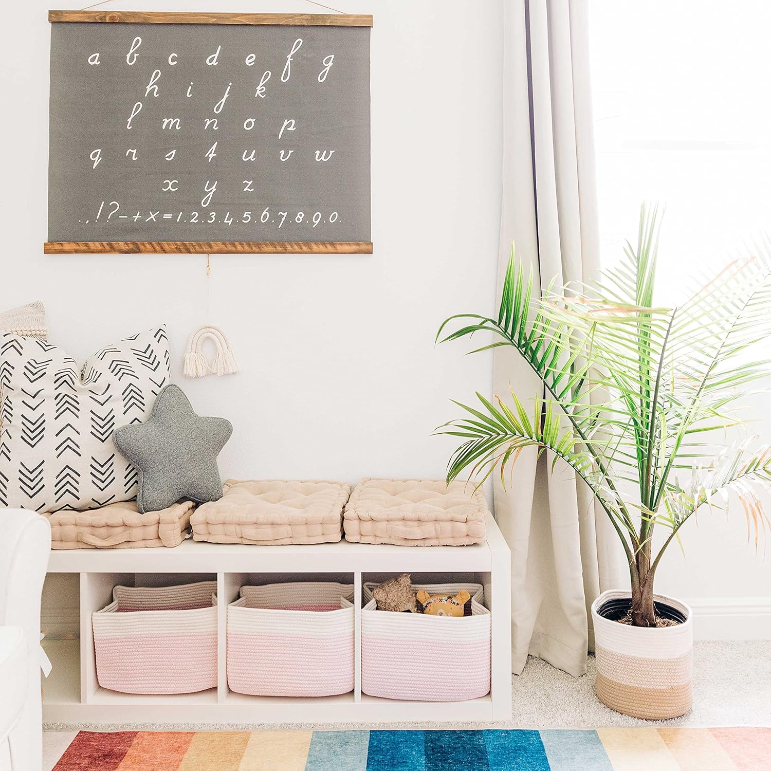 • Discrete, Built-In Carry Handles – These fabric rope baskets for storage also feature slim hand holds built right into the sides of each basket for a seamless look that’s also functional. Perfect for picking up toys or carrying items around the house.