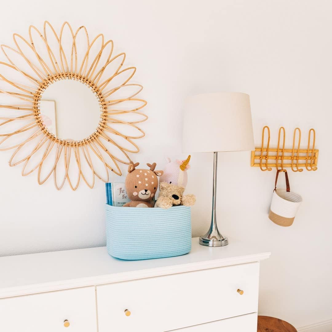 • Premium Cotton Rope Weave – These beautiful rainbow toy baskets are woven with high-quality, all-natural cotton to give them the right balance of softness and durability. This makes them great for bedrooms, nurseries, and laundry rooms as rainbow room decor.